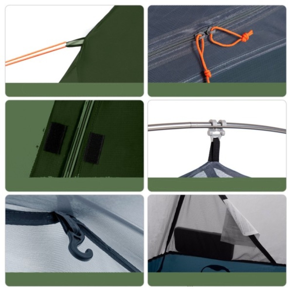 Особливості вентиляційні вікна; сумка-чохол; кілочки; 1 вхід; гачок у центрі житлової зони для зручного кріплення освітлення; футпрінт