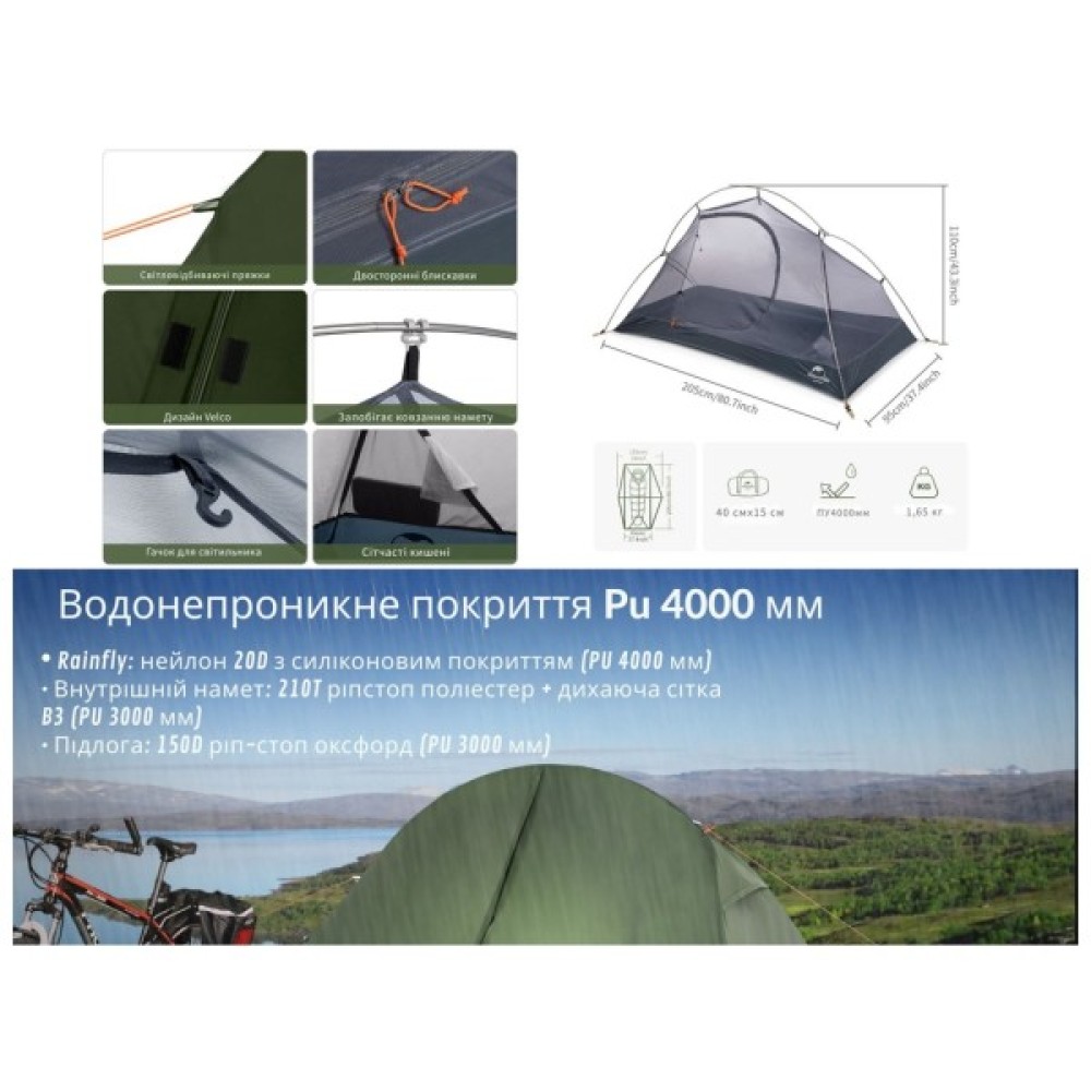 Намет, Naturehike, одномісний, з, футпринтом, Cycling, 1, NH18A095D, зелений, 6927595735671