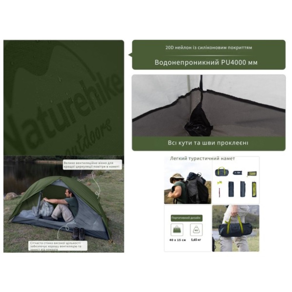 Намет Naturehike одномісний з футпринтом Cycling 1 NH18A095-D зелений (6927595735671)