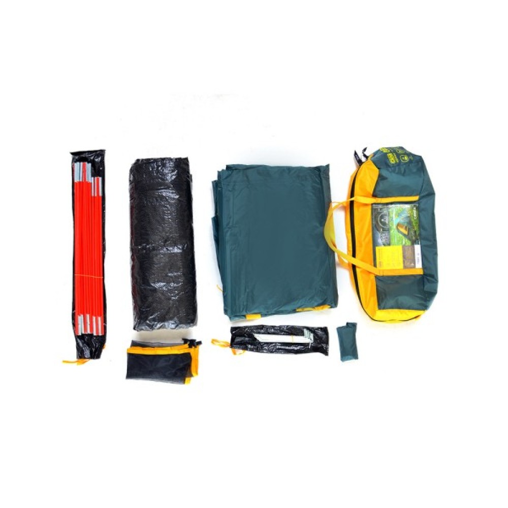 Особливості 3 дуги; ремонтний набір у комплекті; набір кілочків; 2 тамбура; 2 входи; в комплекті чохол; підвісна поличка; 2 вентиляційні клапани; антимоскітна сітка на дверцях; всі шви проклеєні