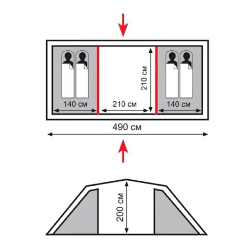 - Двошаровий кемпінговий намет з двома входами і великим тамбуром