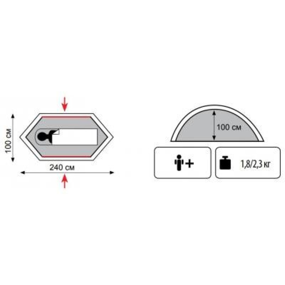 Особливості:- Кількість місць: 1.- Кількість входів: 2.- Матеріал каркаса: Дюрапол.- Матеріал дна: 100% поліестер 75D190T 7000 мм в ст.- Матеріали тенту: 100% поліестер 75D190T RipStop, PU 5000 мм в ст.- Матеріали внутрішнього намету: Сітка.- Кілочки: Металеві.