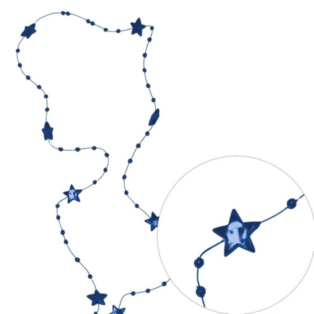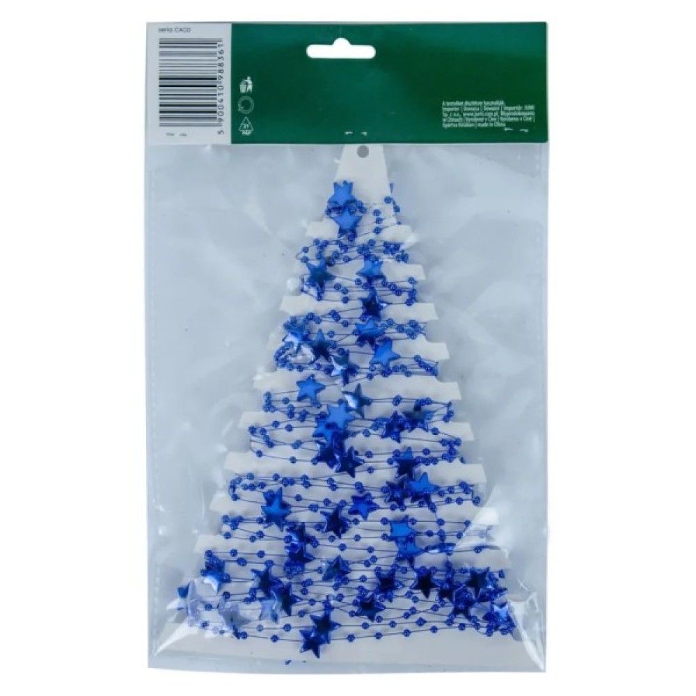 Оригінальний варіант оздоблення — привабливі декоративні буси. Гірлянда стилього синього кольору з глянцевих намистинок у поєднанні з акцентними зірочками стане чудовою прикрасою вашого новорічного дерева, або як доповнюючий елемент декору у святковому інтер'єрі.
