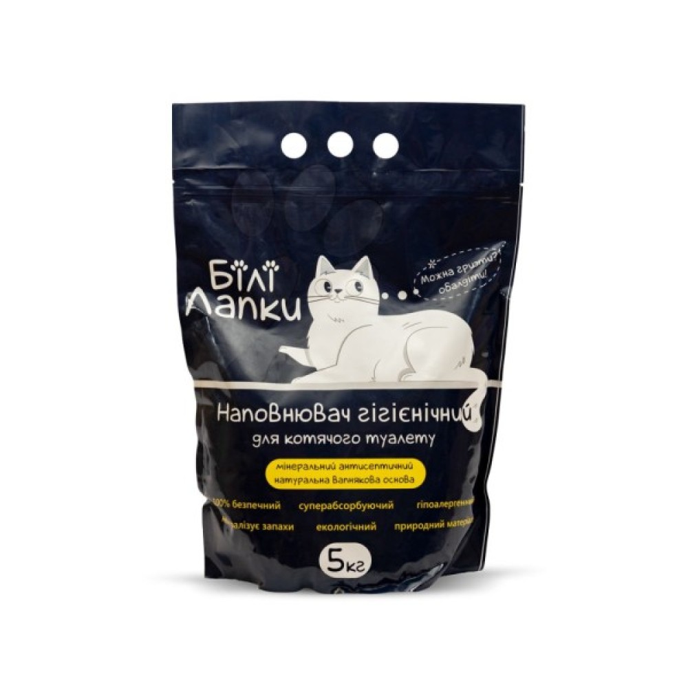 Наповнювач для котячих туалетів «Білі лапки» потурбується про утримання лотка вашого улюбленця в чистоті.