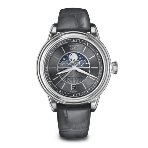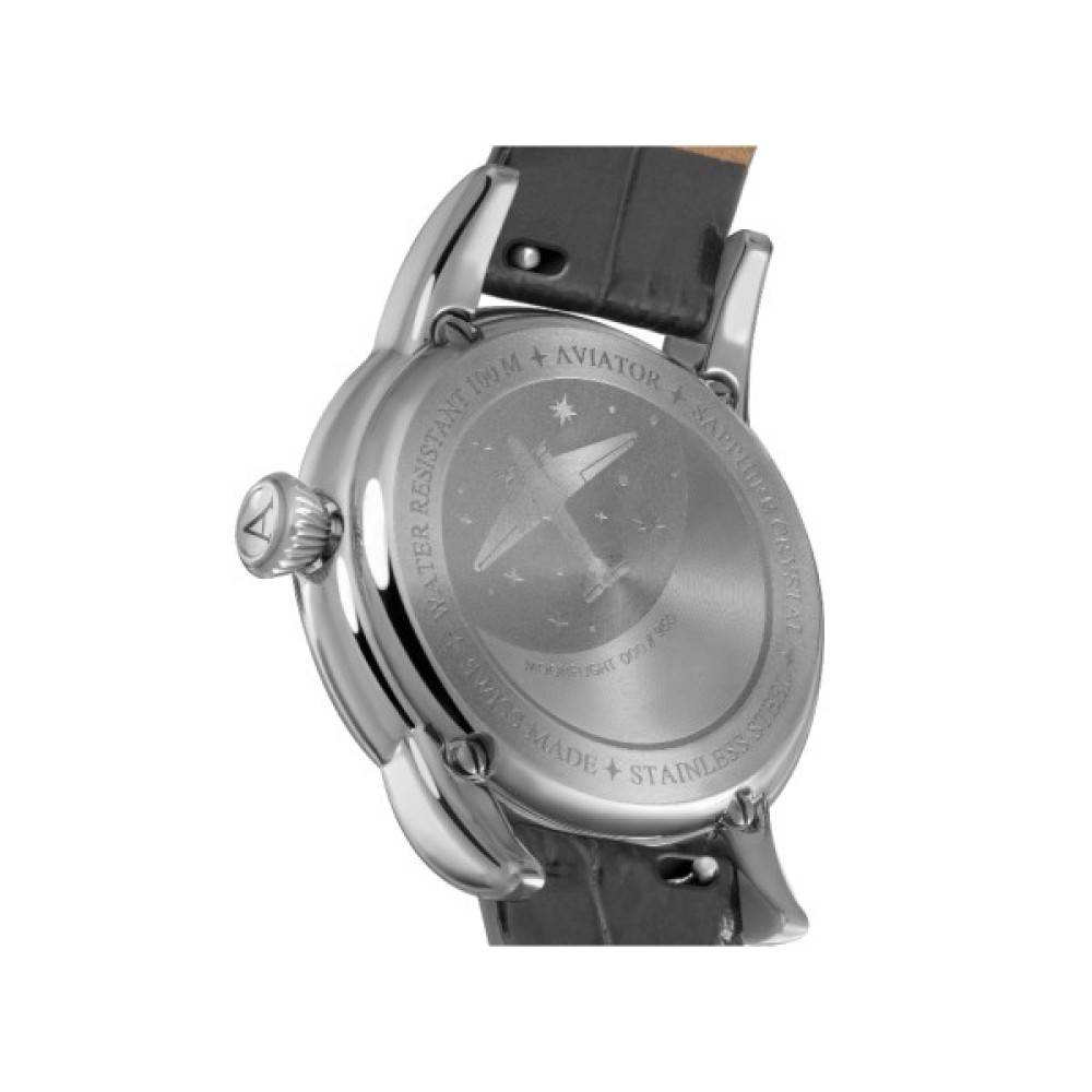 У колекції годинника AVIATOR MoonFlight класичні елементи стилю ар-деко ефектно поєднуються з фазами Місяця. моделі, що ввійшли до неї, присвячені кращому літаку тих часів. З ними ви будете оточені зірками у вишуканій атмосфері від-кутюр.