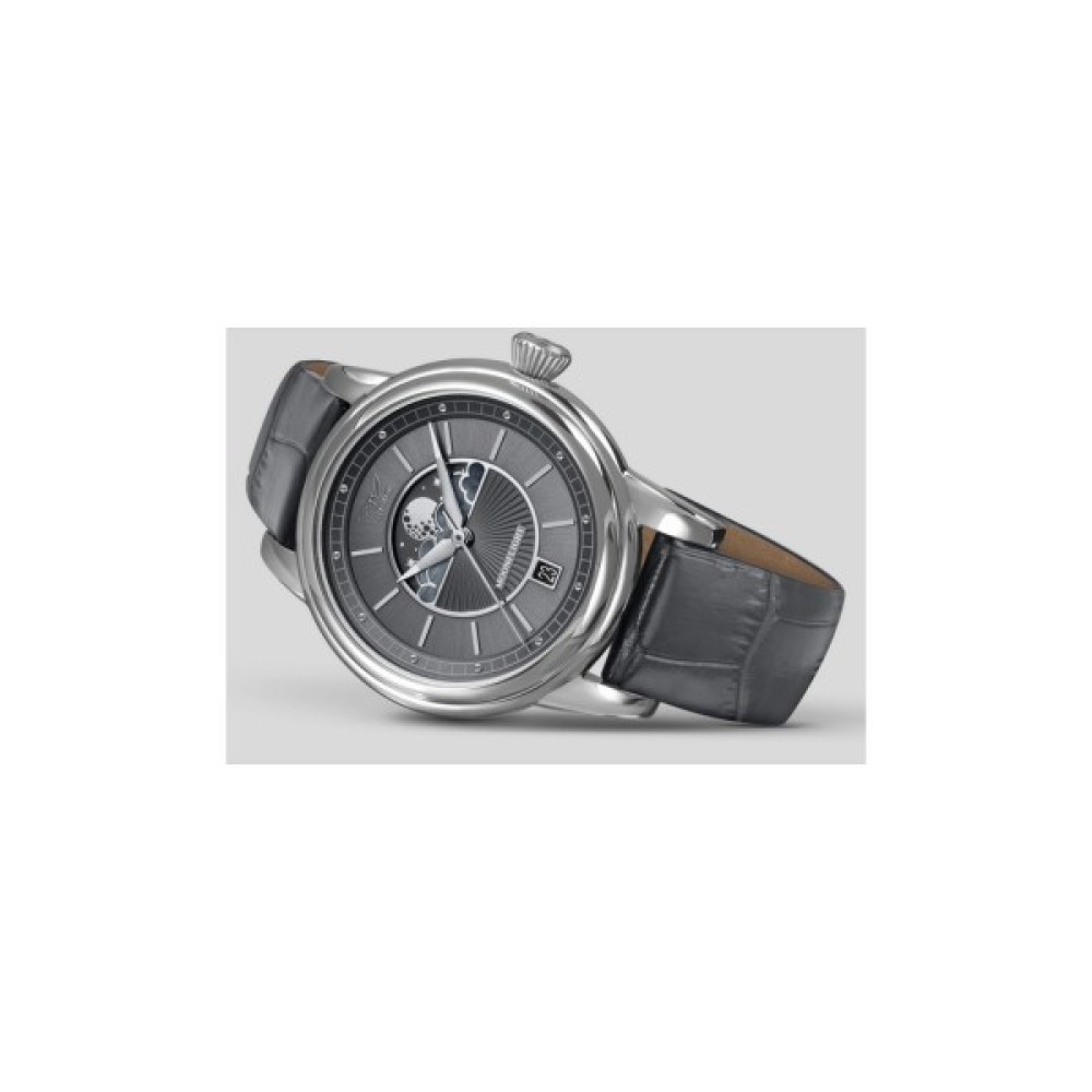Серцем цього годинника став надійний механізм швейцарського виробництва із запасом ходу до 60 місяців. До нього доданий індикатор фаз Місяця, що виділяється за рахунок витонченого оздоблення, металізації та полірування. Працюючи день у день з постійною точністю, механізм показує зміну фаз Місяця.