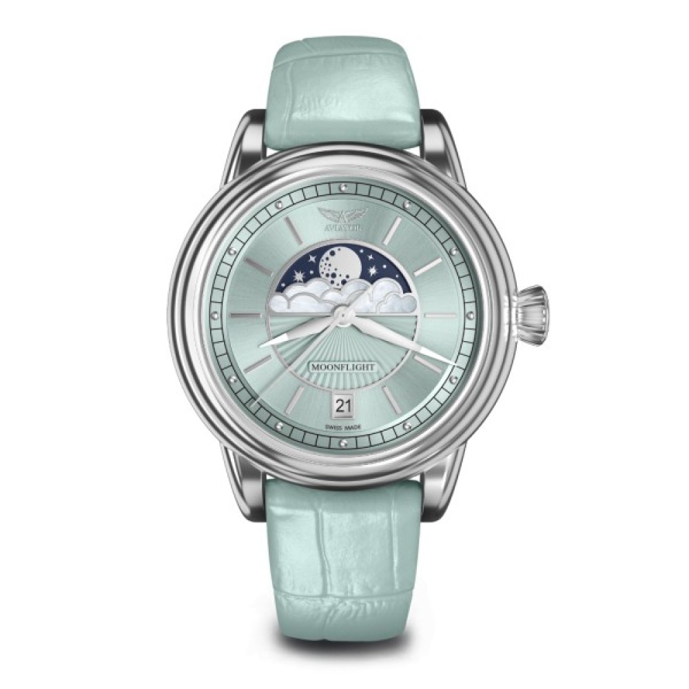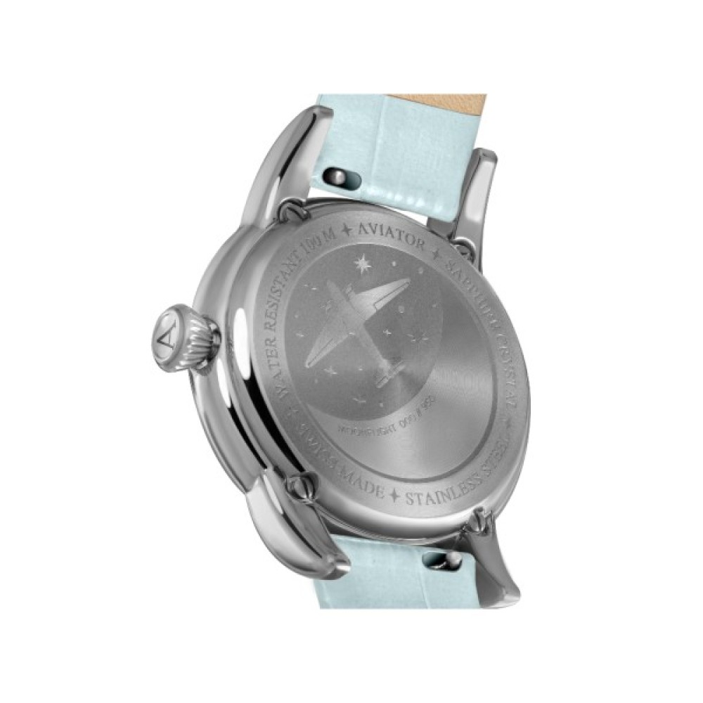 У колекції годинника AVIATOR MoonFlight класичні елементи стилю ар-деко ефектно поєднуються з фазами Місяця. моделі, що ввійшли до неї, присвячені кращому літаку тих часів. З ними ви будете оточені зірками у вишуканій атмосфері від-кутюр.