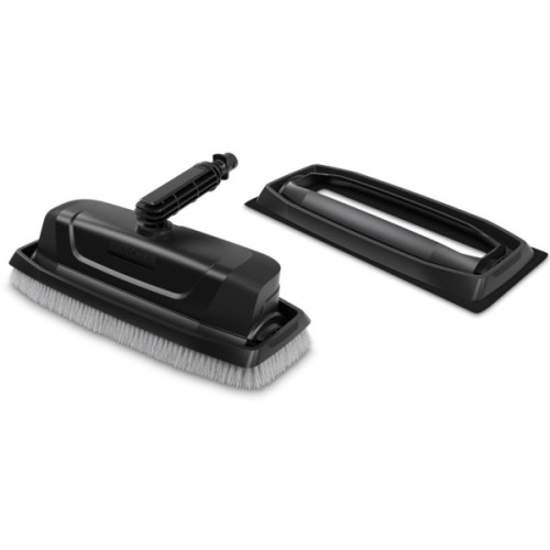 Рішення для рівномірного і ефективного очищення: насадка з 4 вбудованими соплами високого тиску видаляє стійкі забруднення з різних поверхонь. В залежності від розв'язуваної задачі її можна швидко і легко оснастити однією з змінних рамок, що входять в комплект поставки. Щіткова рамка призначена для чищення стін, завдяки щетині по периметру захищає користувача від бризок води і, крім того, дозволяє плавно переміщати насадку по поверхні. А для очищення скляних поверхонь (наприклад, зимових садів) підходить рамка з мікроволоконним падом, який закріплюється на ній липучкою. Його абразивні волокна сприяють кращому відділенню бруду і гарантують дбайливе очищення поверхонь.