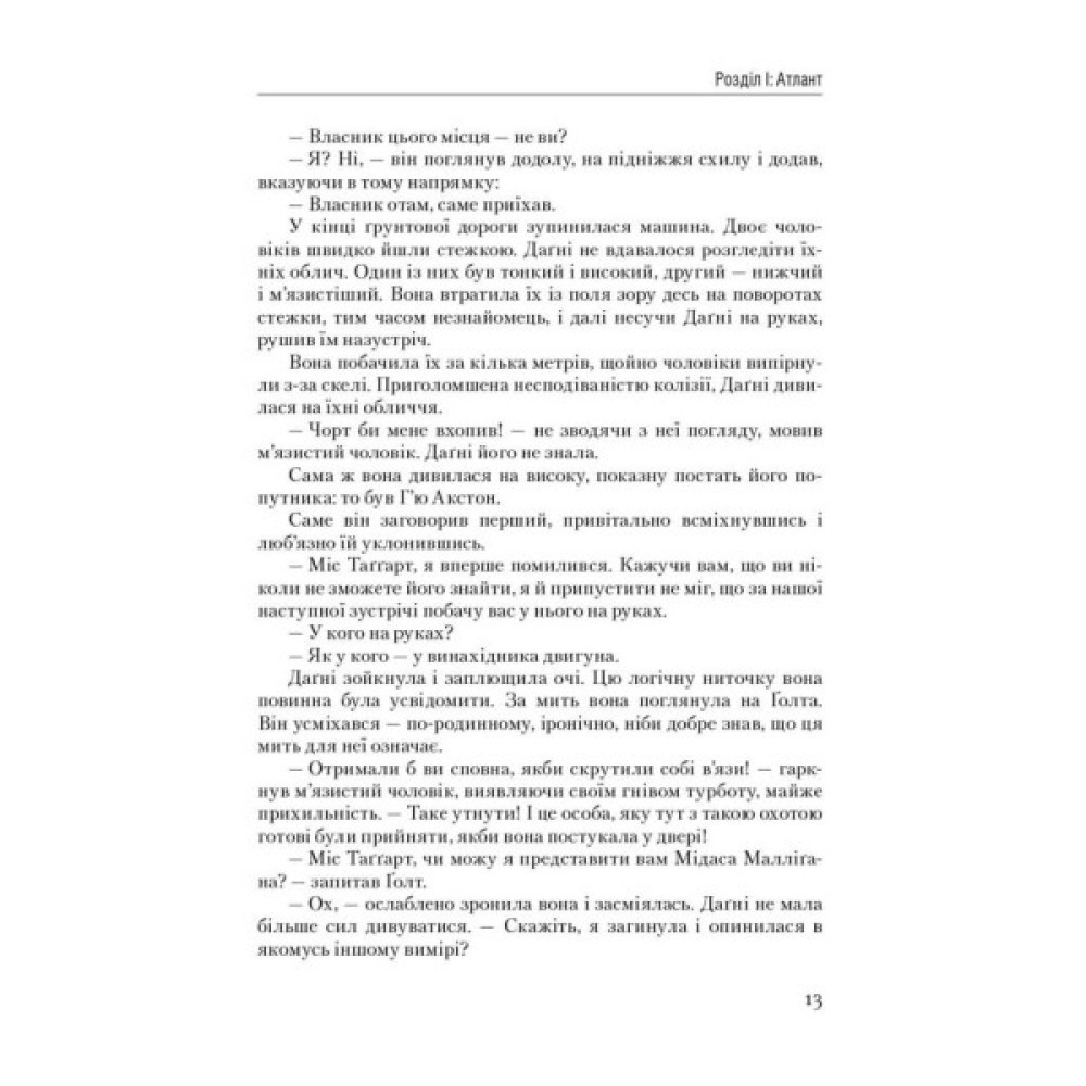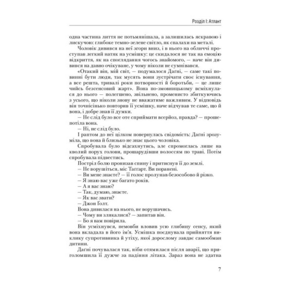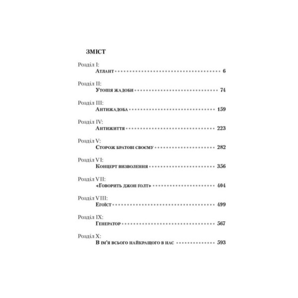 Якщо "Атлант розправив плечі", то що йому до тих, чиї прокльони становлять єдине їхнє надбання? Чи існує ймовірність повернення атлантів, що подалися у добровільне вигнання? Погляньте довкола, можливо, сучасний діловий Київ є відголоском їхніх титанічних зусиль знову підняти небо людського духу та самозвершення, що долунює до нас через час й океан.