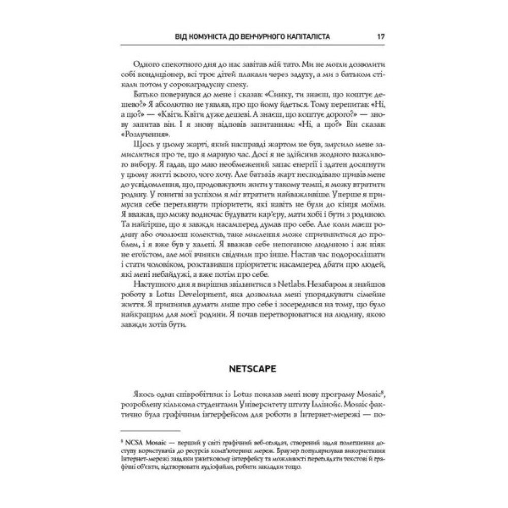 Докладніше про цю книгу можна говорити довго - але в інтернеті ви і так знайдете чимало позитивних відгуків від зарубіжних і українських журналістів, блогерів, оглядачів та підприємців. Чому варто звернути увагу на бестселер 2015 від Harper Collins? Пропонована книга, купити яку ви можете в нашому інтернет-магазині, вийшла в українському перекладі восени 2015-го. Якщо Ви працюєте або працювали в ІТ, ви явно чули ім'я її автора. Бен Ґоровіц відомий не тільки завдяки блискучій лисині та любові до гангста-репу. Не менш славетні його гострий розум на пару з уїдливою кмітливістю. Саме він колись заклав основи сучасної Кремнієвої Долини, зумів втримати перший власний стартап на плаву під час «краху доткомів», ставши сьогодні одним з тих, кого називають успішними інвесторами сучасності.
