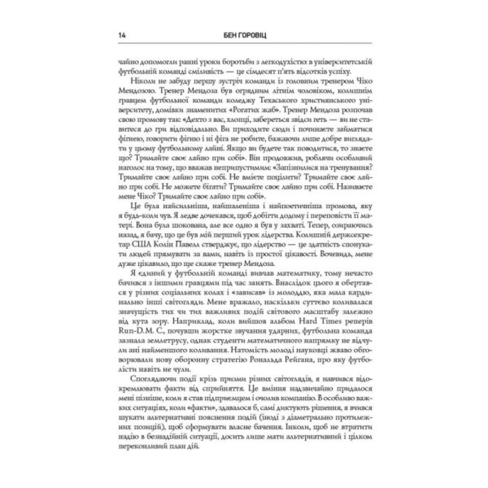 Існує купа до біса нудних менторських книг про те, як стати серйозним грошовим бізнесменом. Але «The Hard Thing About Hard Things» не з таких. Ця книга заснована на історіях з блогу на 10 мільйонів читачів самого Ґоровіца і на досвіді роботи венчурного фонду Andreessen Horowitz, що став однією з найбільш впливових фінансових установ у США. Безжальний Київ перемеле вас з тельбухами, якщо ви будете не здатні вичавлювати потенціал своїх підлеглих до останньої краплини, Ґоровіц з’їв не одного пса у цій науці і тепер ладен навчити дечому й вас.