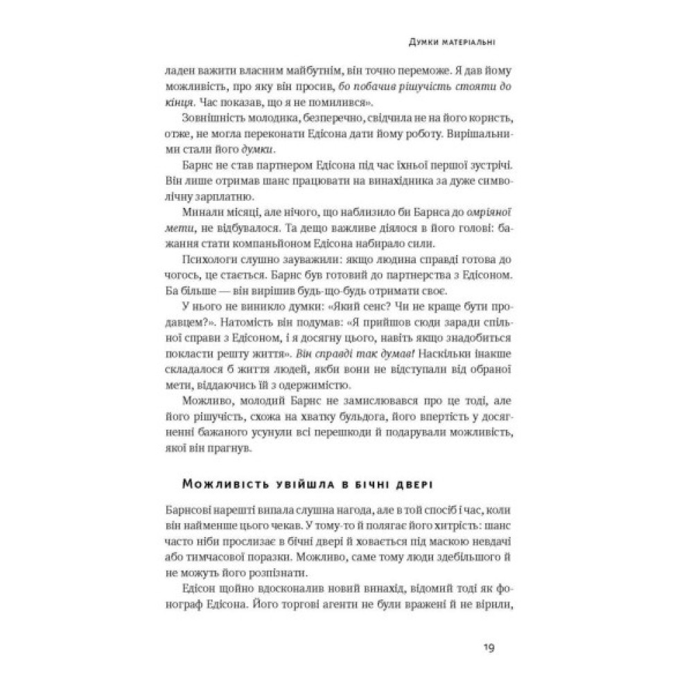 У кожного із нас своя мета. Наполеон Гілл, автор цієї книги, впевнений, що існує універсальний рецепт успішного життя. Він протягом двадцяти років вивчав біографії відомих людей — бізнесменів, політиків та вчених — задля того, щоб вивести цю формулу. У книзі ви знайдете не лише інсайти із життя Томаса Едісона, Генрі Форда та інших, а й влучно підсумовані висновки та правила, перевірені власним досвідом.