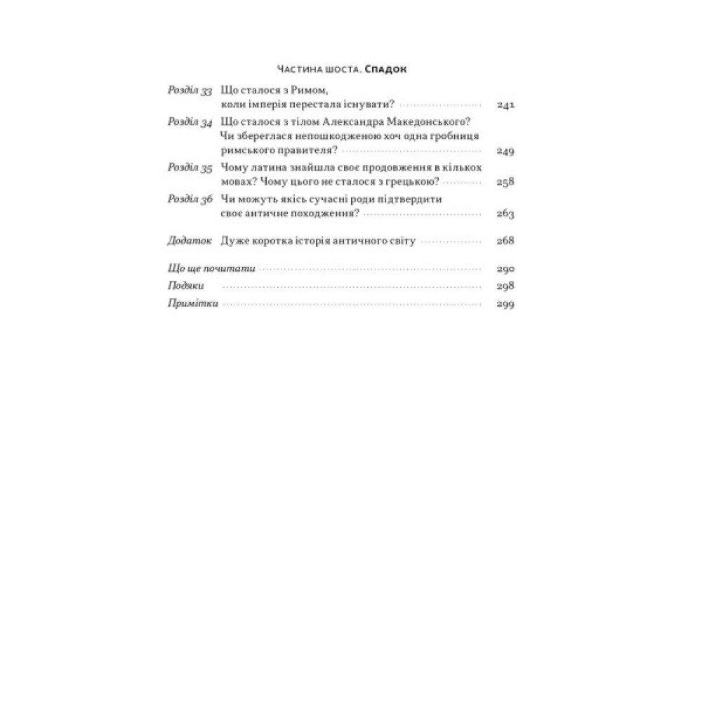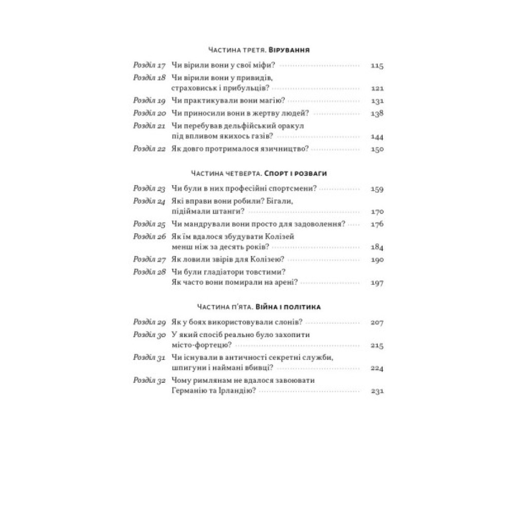 У цій книжці є оракули та шпигуни, Рим і Афіни, Спарта й Карфаген, Цезар і Нерон, язичники та християни, леви на арені й домашні улюбленці. Немає хіба занудства й намагання розповісти найвичерпнішу історію античності.