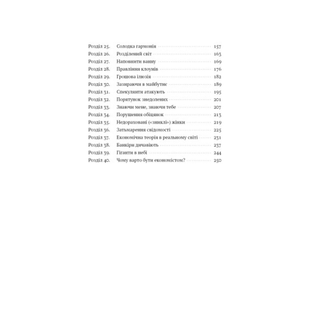 Ви дізнаєтеся, чому економіка — це питання життя і смерті, як вивчення цієї науки може змінити світ на краще, чому давніх філософів і сучасних людей хвилюють ті самі питання та як економіст Рот уможливив вигідний обмін нирками. А також зможете чітко відрізнити погляди Маркса від ідей Гаєка, обережний капіталізм від безрозсудного та довідаєтеся, чому економічні знання потрібні всім, а не тільки фахівцям.