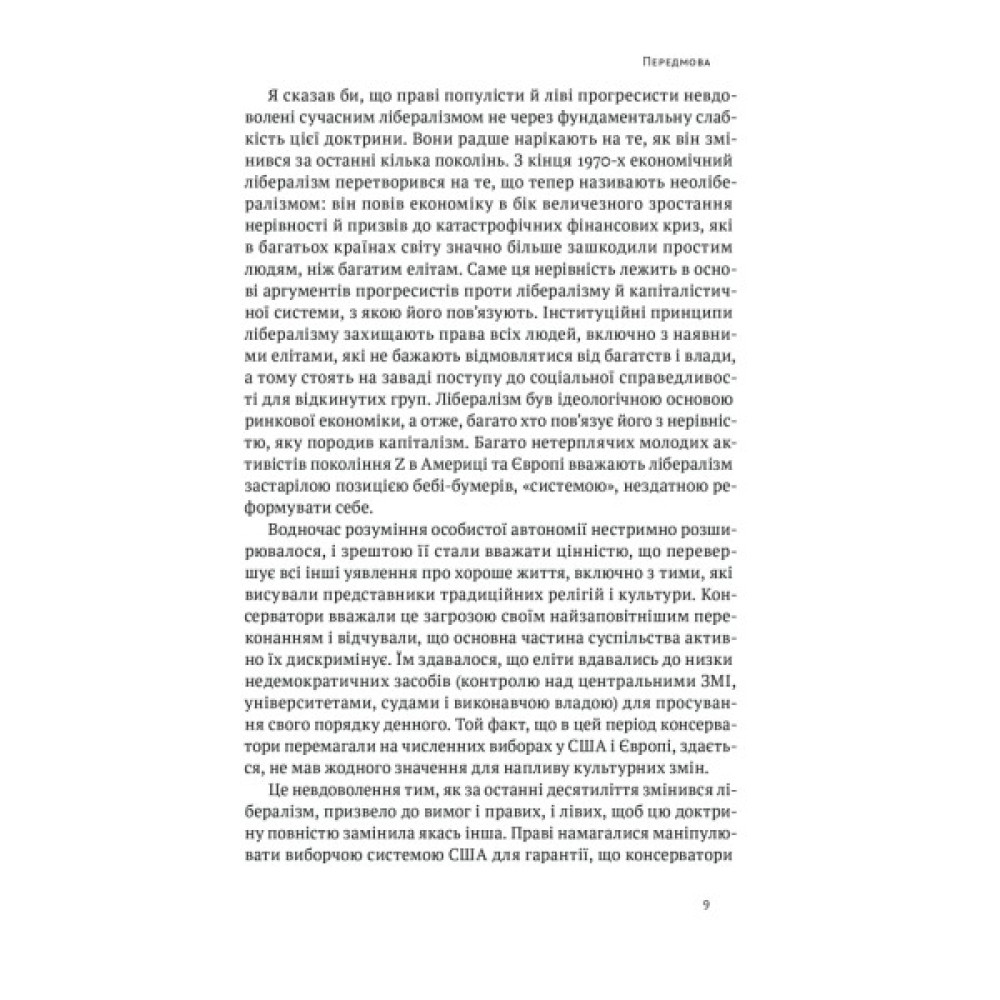 Старі компроміси в країнах розвинутого світу руйнуються на наших очах. Багато хто вважав ліберальне суспільство ідеалом, до якого потрібно прагнути, однак сьогодні перед ним стоять глобальні виклики. Неоліберали перетворюють економічну свободу і вільний ринок на релігійний культ, прогресисти нав’язують пріоритети інтересів окремих груп і глобальний перерозподіл доходів, посилюються правий та лівий популізми.