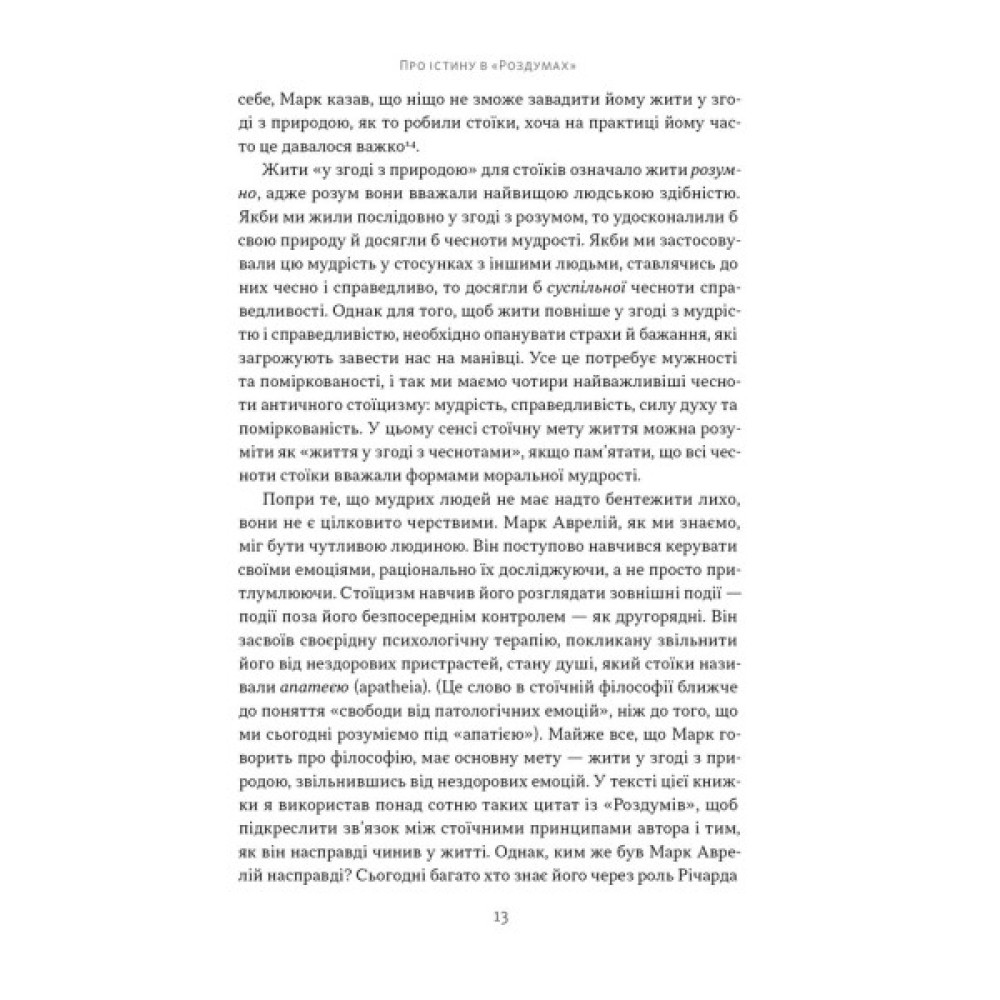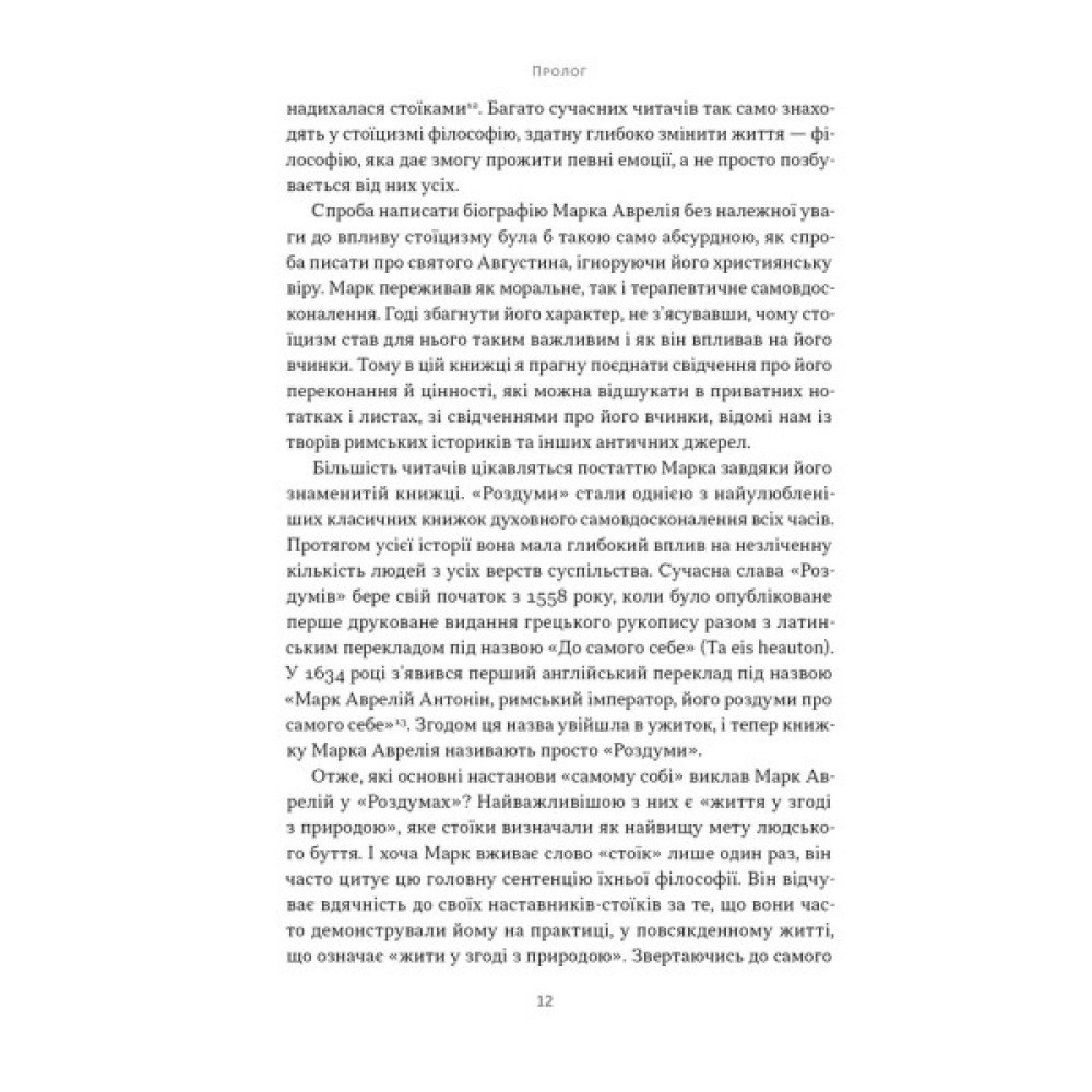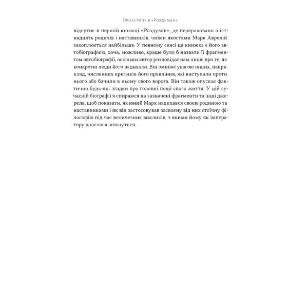 У ваших руках захоплива історія шляху та випробувань імператора Марка Аврелія. З неї ви дізнаєтеся про роль стоїків та імператора Адріана у становленні майбутнього правителя, про моральні дилеми Марка Аврелія щодо рабства, про його стиль керування величезною імперією і рішучі кроки в умовах політичного тиску та економічних криз. У цій книжці Дональд Робертсон досліджує, що ж саме зробило Марка Аврелія визначним лідером і філософом, яким і сьогодні захоплюються мільйони людей.