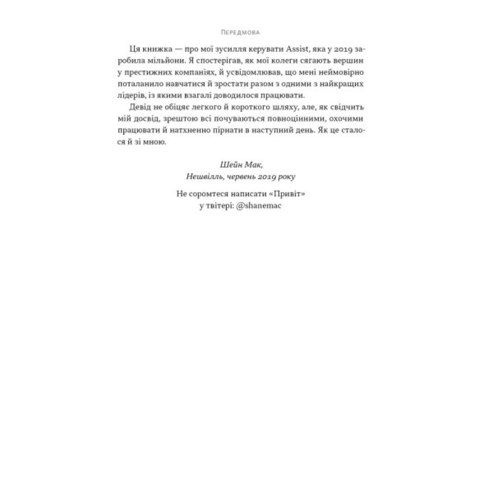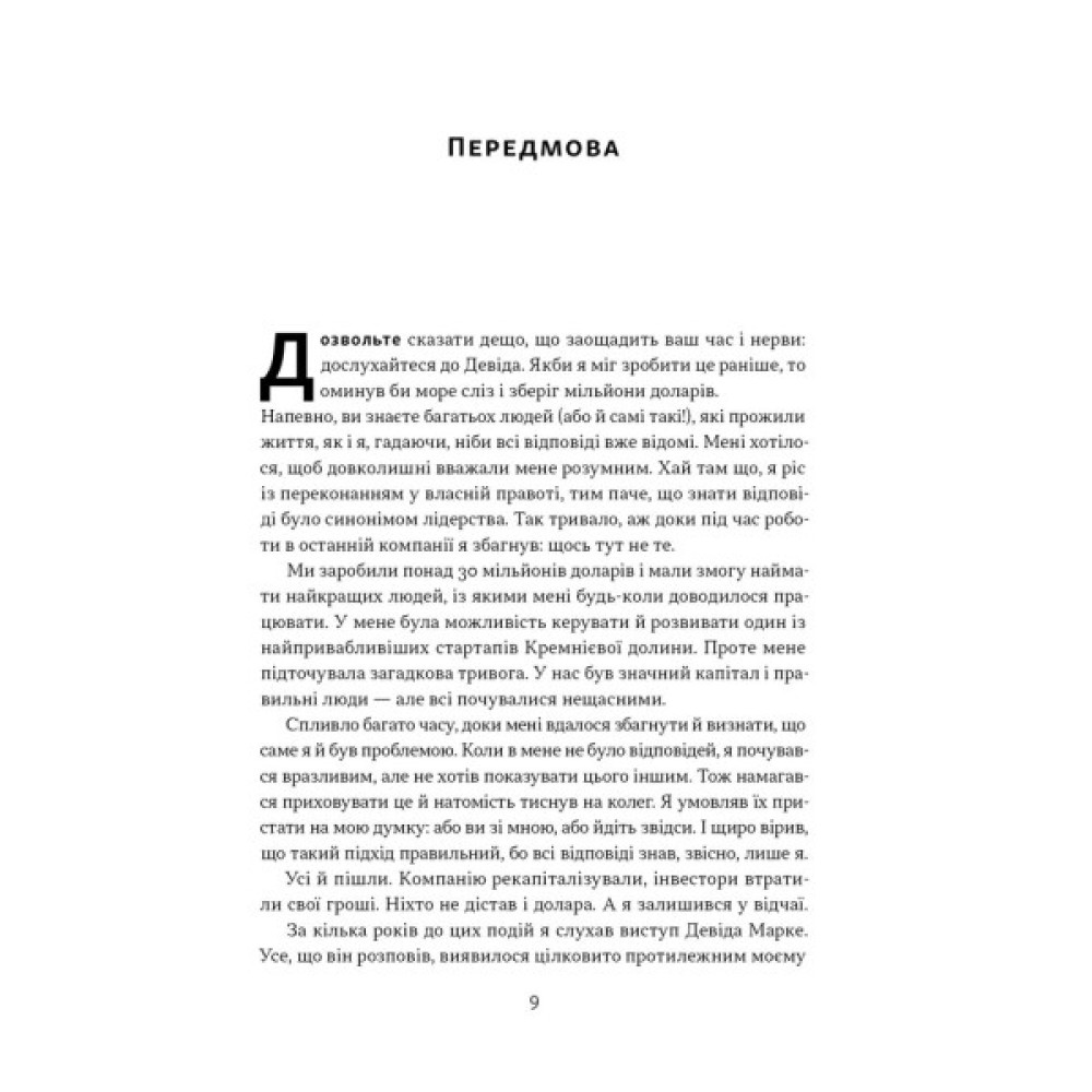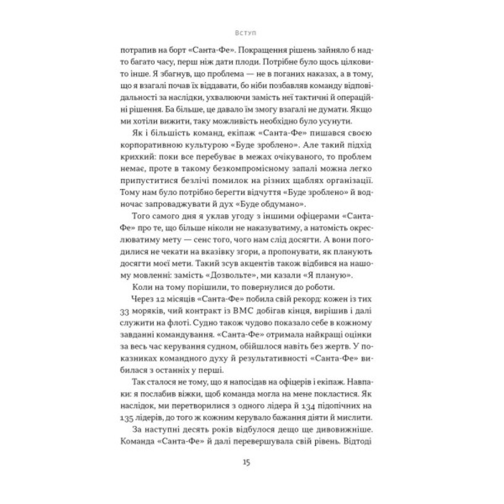 Автор розкриває набір принципів та інструментів, які надихають людей брати на себе ініціативу, розв’язувати проблеми самостійно і діяти без постійних вказівок. Завдяки практичним порадам із книжки ви досить швидко побудуєте в команді якісно кращий рівень довіри та відповідальності, станете тим лідером, за яким хочеться йти.