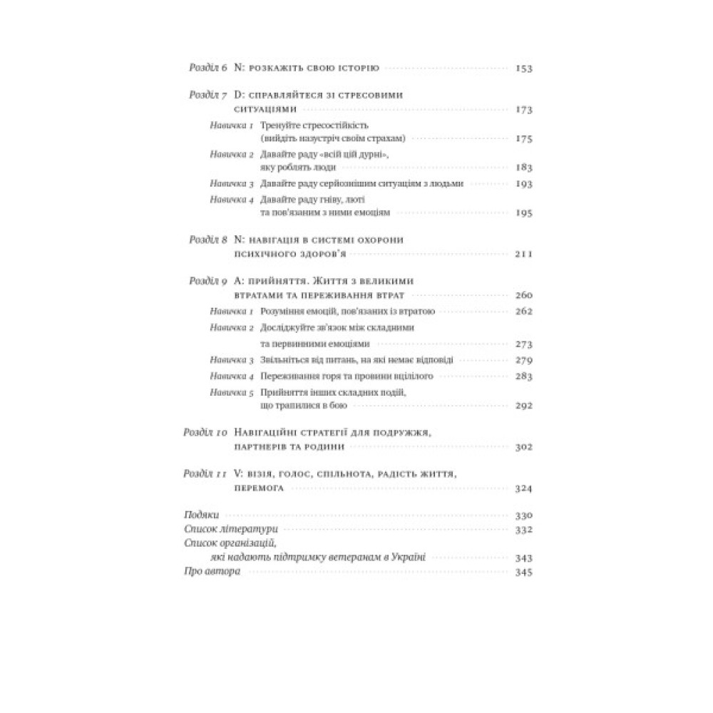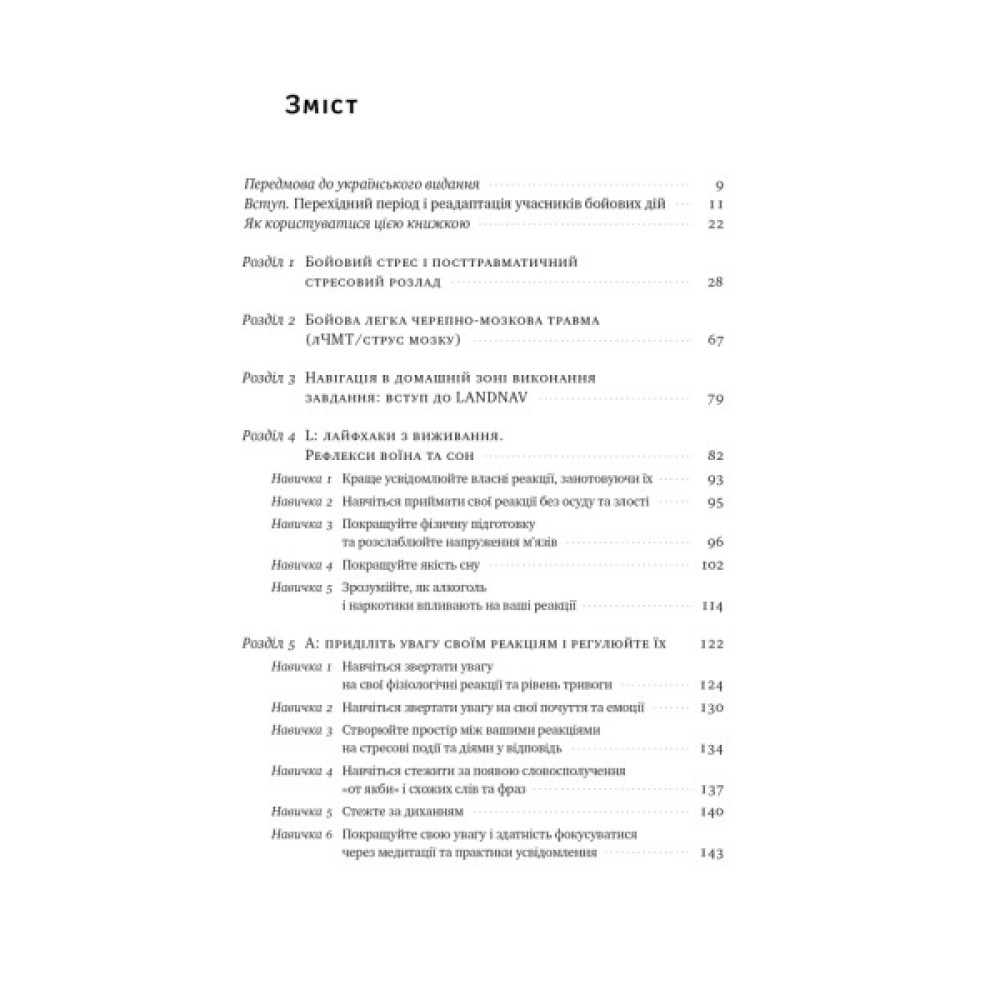 Книга має 11 розділів, в яких автор пояснює, як ПТСР, легкі черепно-мозкові травми, бойовий стрес впливають на здоров’я і психіку, дає лайфхаки щодо повсякденного життя та керування своїми реакціями, радить стратегії щодо налаштування сімейного і робочого життя тощо. У цій книзі читачі знайдуть не тільки ресурси та методики, а й співчуття та підтримку. Видання допоможе зрозуміти, що психічне здоров’я не менш важливе за фізичне, і що звертатися по допомогу — це не слабкість.
