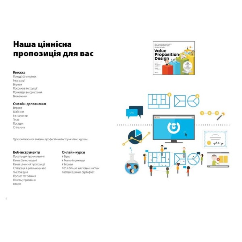У книзі «Розробляємо ціннісні пропозиції» ви знайдете докладні роз'яснення, як розробляти ціннісні пропозиції й аналізувати їх, не витрачаючи зайвих грошей і часу.