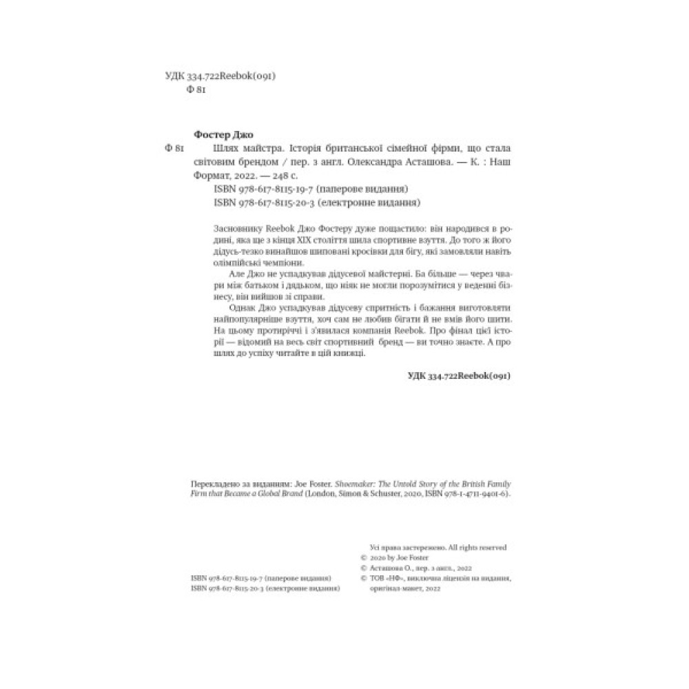 Засновник Reebok не любив ні бігати, ні шити взуття. Як же йому вдалося створити успішний бізнес? Бізнес-тренери ж кажуть, що треба любити те, що робиш! Усе просто: він народився в родині взуттярів, а його дідусь навіть шив кросівки для олімпійських чемпіонів. Усе складно: війна забрала статки й дитинство, він не успадкував сімейного бізнесу і через скруту жив з дружиною на зруйнованій фабриці. Це нетипова історія про підприємницьку жилку й масштабування бізнесу, великі амбіції, віру в себе та бажання продовжувати сімейну справу. У власному темпі, кілька перипетійних десятиліть, аж поки Reebok із сімейної справи стане світовим брендом.