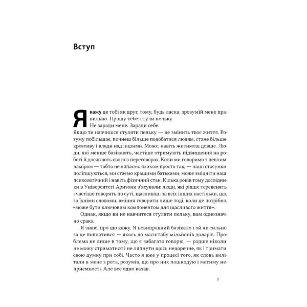 А що, як секрет успіху — в умінні змовчати? Ден Лайонс ділиться своїм досвідом і дослідженнями провідних експертів з комунікацій, нейробіологів, соціальних психологів, психіатрів та босів компаній Кремнієвої долини. Усе це — щоб переконливо довести: контроль над словами — сила.