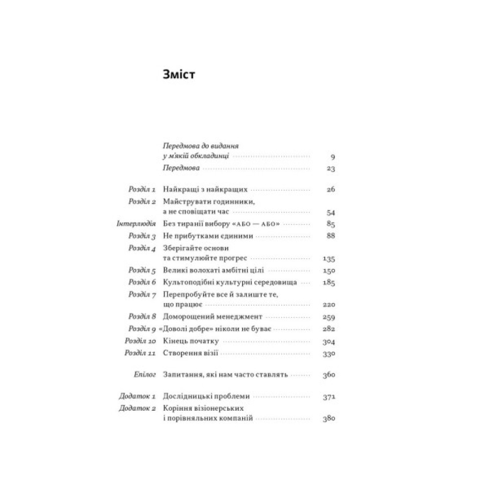 Що відрізняє справді видатні компанії від решти? Ґрунтуючись на багаторічному дослідженні, легендарний Джим Коллінз і професор Джеррі Поррас наводять численні приклади компаній, які є по-справжньому візіонерськими. Історії їхнього успіху мають мотивувати і сучасних менеджерів будувати бізнеси на совість.