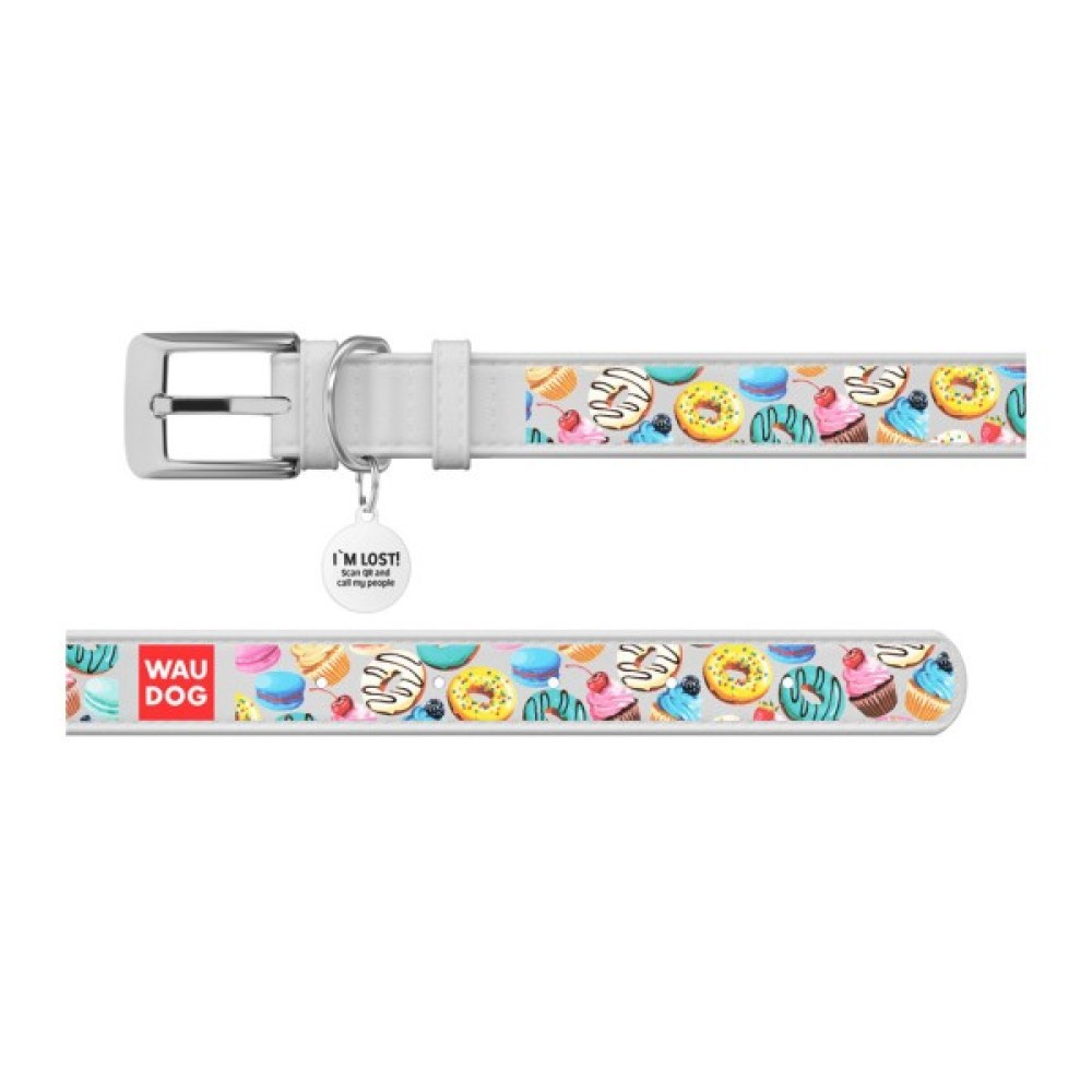 Нашийник для тварин WAUDOG Design з QR паспортом "Пончики" Ш 12 мм Д 20-28 см білий (369115)