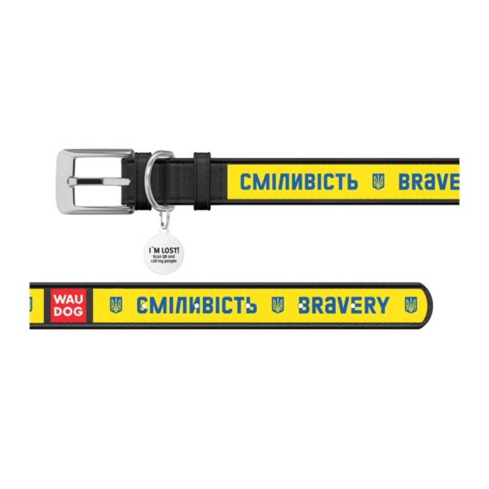 Нашийник для тварин WAUDOG Design з QR паспортом "Сміливість" Ш 35 мм Д 46-59 см чорний (3606-0231-01)