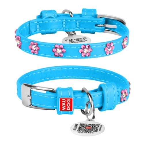 Нашийник для тварин WAUDOG Glamour з QR-паспортом "Квіти" XS Ш 15 мм Д 27-36 см блакитний (32842)