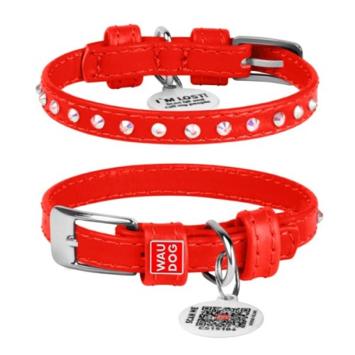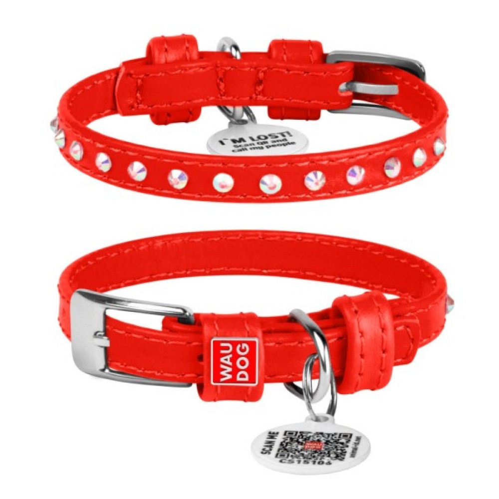 Нашийник для тварин WAUDOG Glamour з QR-паспортом з стразами XXS Ш 9 мм Д 18-21 см червоний (32503)