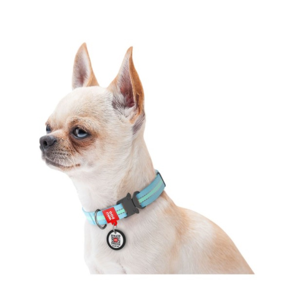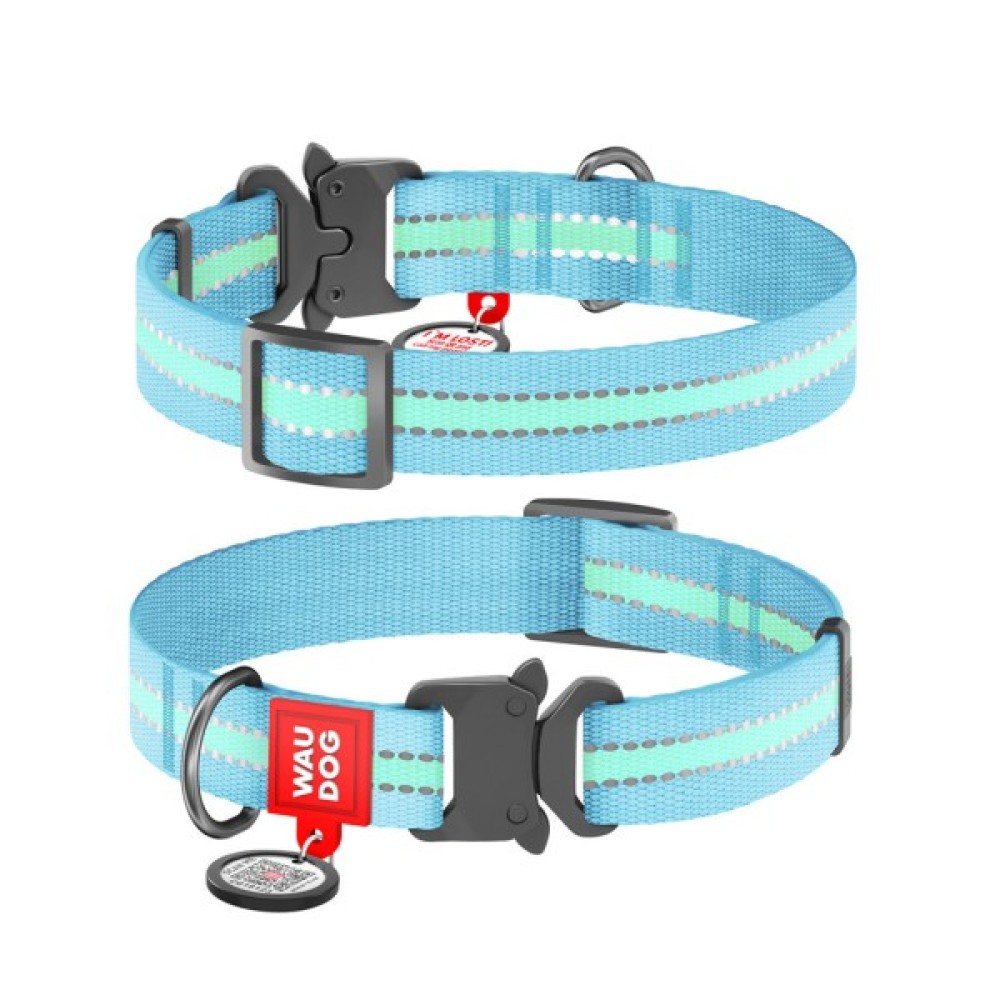 Нашийник, тварин, WAUDOG, Nylon, з, QR, паспортом, металічна, пряжкафастекс, Ш, 20, мм, Д, 2840, см, блакитний, 52132