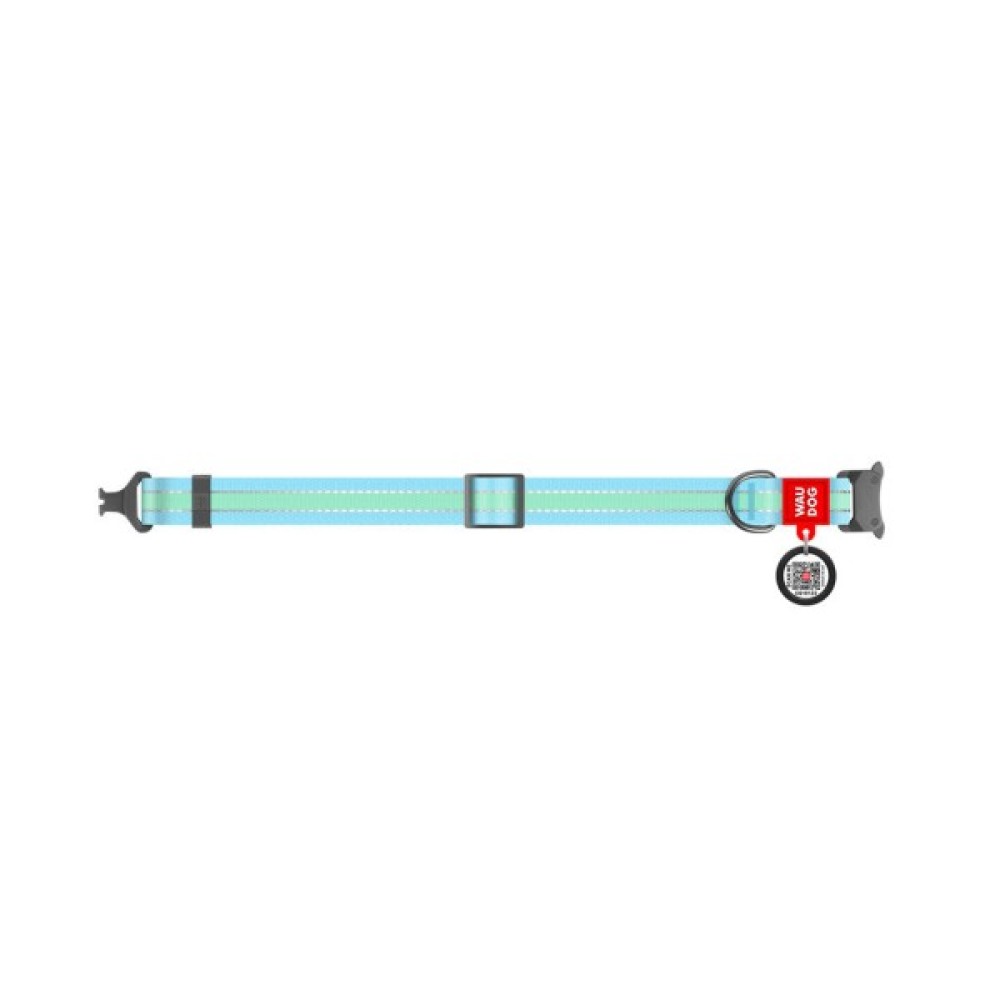 Нашийник для тварин WAUDOG Nylon з QR паспортом металічна пряжка-фастекс Ш 20 мм Д 28-40 см блакитний (52132)