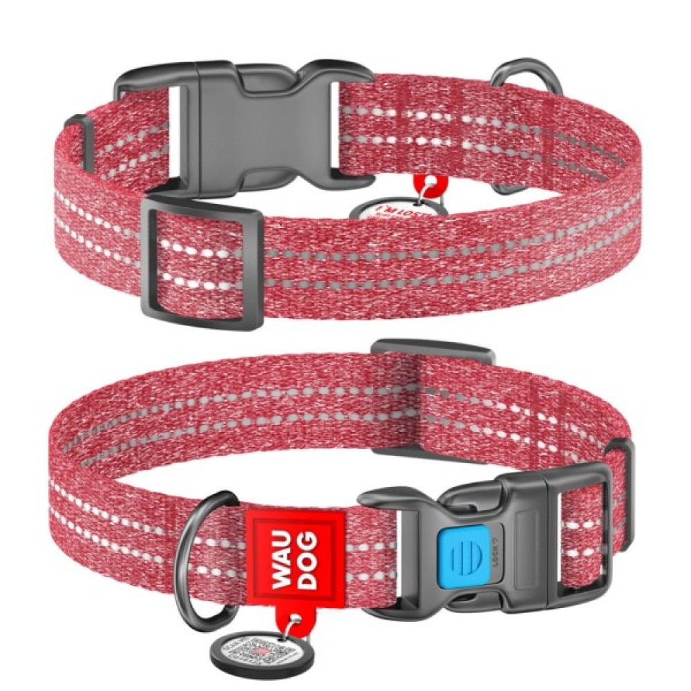 Нашийник для тварин WAUDOG Re-cotton з QR паспортом світловідбивний Ш 25 мм Д 37-58 см червоний (02943)
