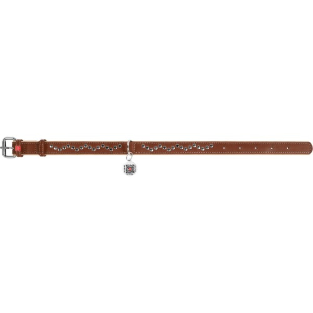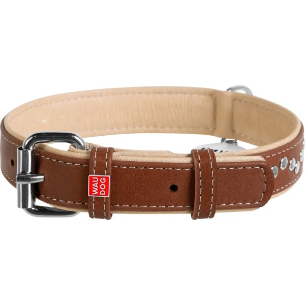Головне завдання нашийника – бути міцним і надійним. Коли ця мета досягнута, можна подумати про комфорт. У виробах серії WAUDOG Soft ця задача вирішена. При виготовленні застосовується найм’якіша шкіра. Проведіть рукою по поверхні нашийника і відчуйте різницю! На шкірі нашийників збережений її природний малюнок. З часом нашийники стають тільки краще, набуваючи додатковий природний блиск і м'якість. Довжина нашийника підбирається відповідно до обхвату шиї хвостатого друга, який визначають вимірювальною стрічкою. При цьому правильно додавати до отриманого результату від 2 см (для середніх і дрібних порід) до 5 см (для великих), щоб нашийник не натирав і не здавлював шию тварини.