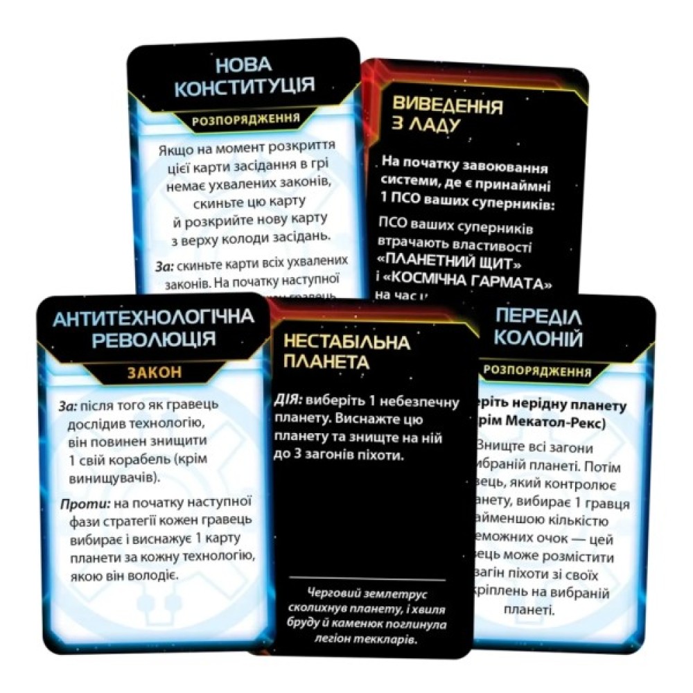 Інноваційні механіки роблять гру надзвичайно динамічною, зберігаючи при цьому глибокий стратегічний потенціал. Гра передбачає від 3 до 6 учасників, де кожен отримує завдання виконувати як загальні, так і секретні цілі, щоб здобути престол планети Мекатол-Рекс.