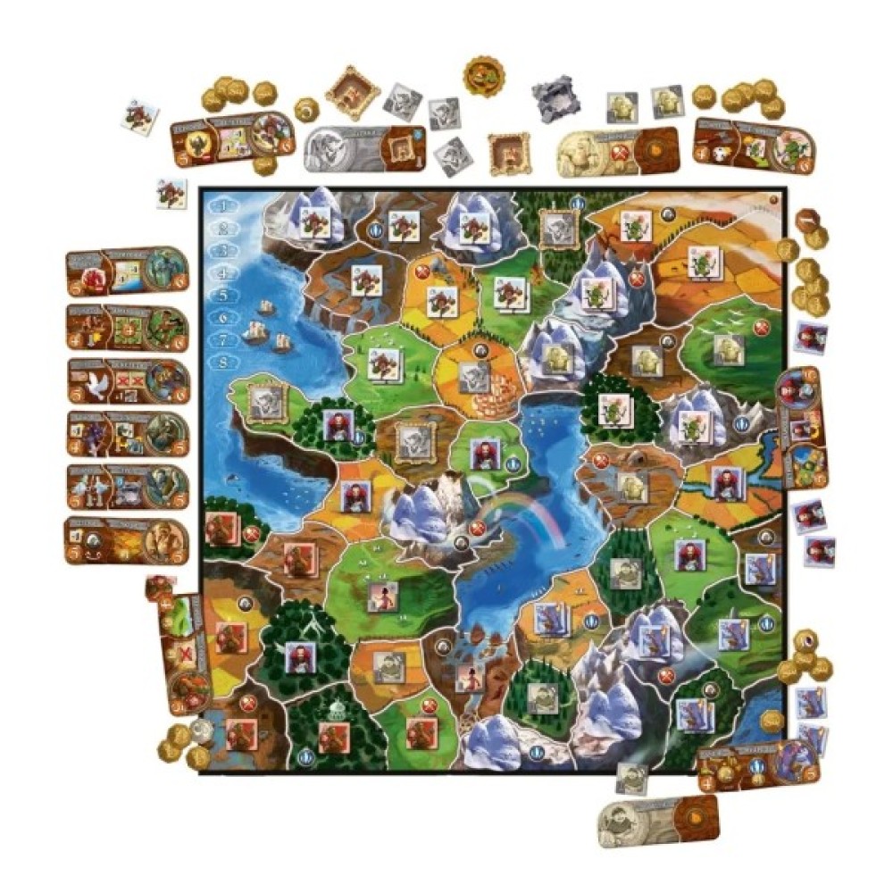 2 двосторонніх ігрових поля (4 мапи), 6 пам'яток, 14 двосторонніх плиток рас, 1 порожня плитка раси, 168 жетонів рас, 18 жетонів загублених племен, 20 плиток властивостей, 1 порожня плитка властивості, 10 жетонів тролячих лігв, 6 жетонів фортець, 9 жетонів гір, 5 жетонів таборів, 2 жетона нори, 2 жетона героїв, 1 жетон дракона, 109 монет переможних очок, 1 особливий шестигранний кубик підкріплень, 1 маркер раунду, додаток, правила