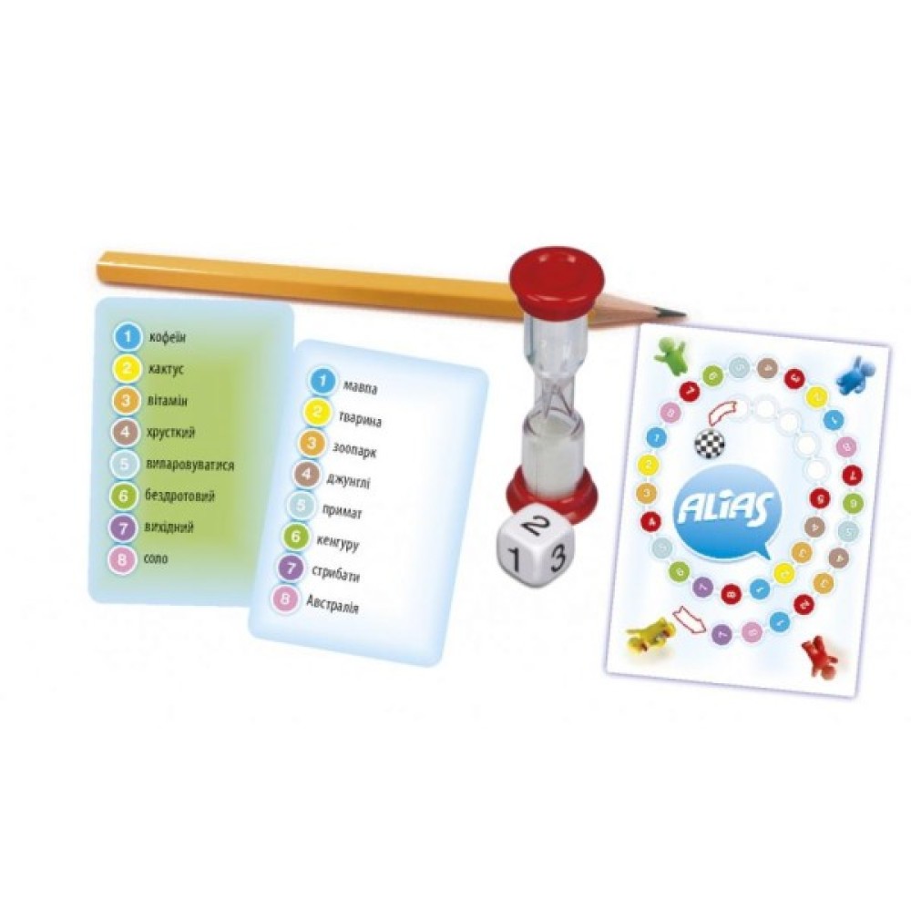 Комплектація 30 двосторонніх карток для всієї родини 20 двосторонніх карток для дорослих ігровий блокнот пісочний годинник рулетка олівець