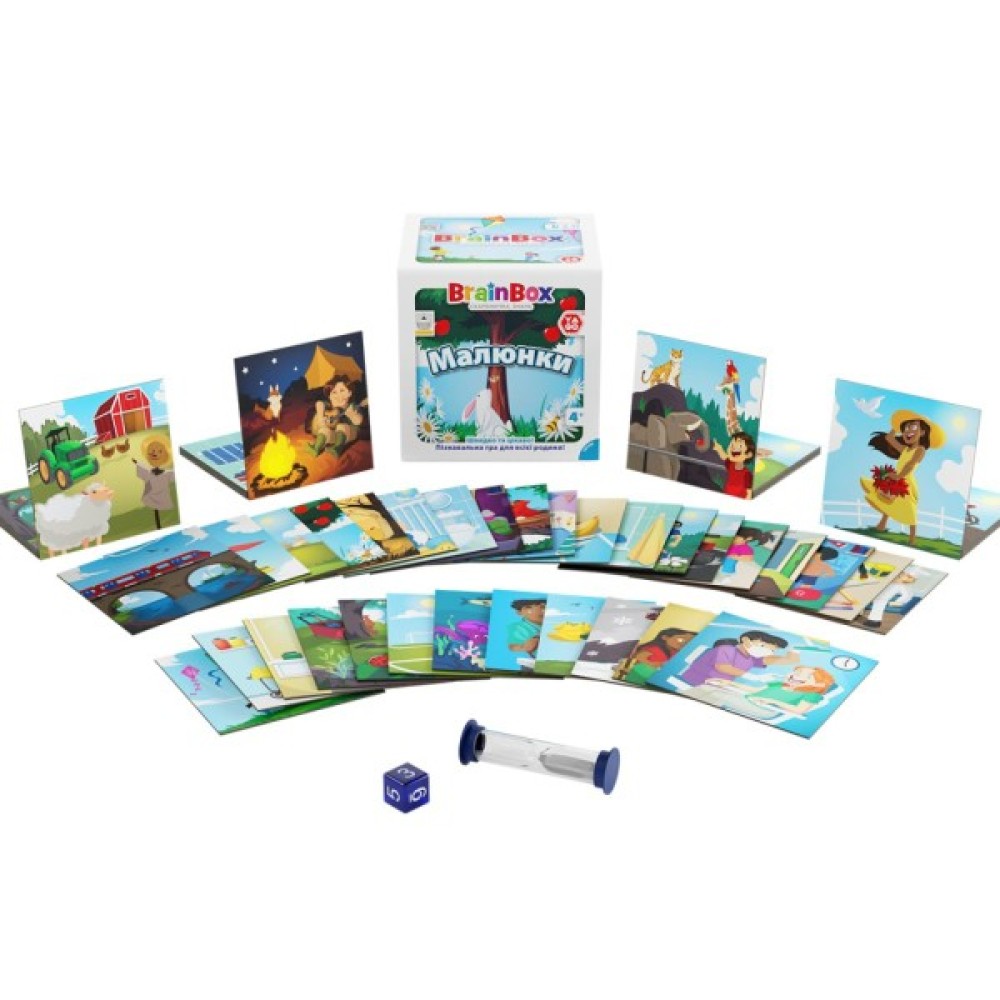 Комплектація містить 55 яскравих ігрових карток, на яких зображені різноманітні сцени та ілюстрації, що сприяють покращенню розуміння навколишнього світу. У комплект також входять пісочний годинник на 10 секунд і гральний кубик, що додають динаміки та азарту. Гра побудована таким чином, щоб розвивати пам’ять, концентрацію та логічне мислення. Всього 330 запитань триматимуть у напрузі навіть найдопитливіших!