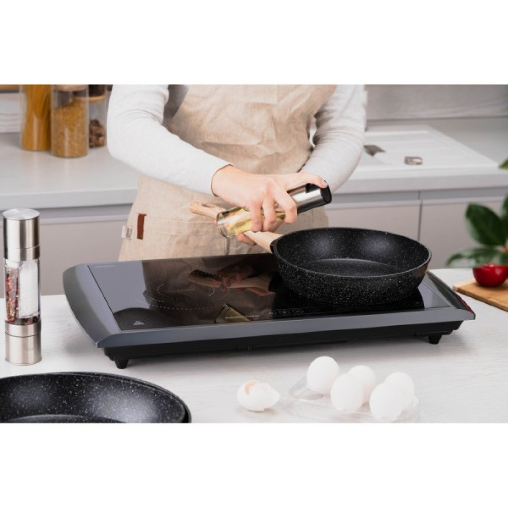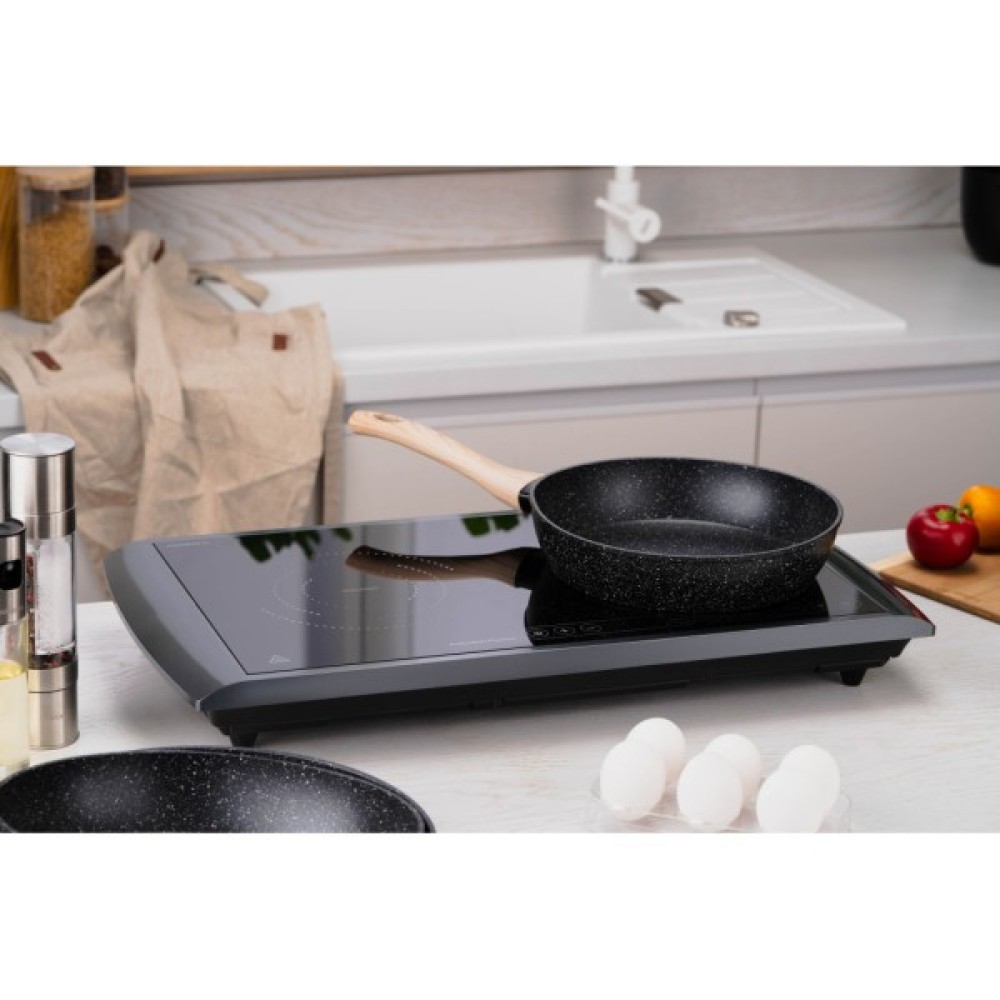 Настільна індукційна плита ICS-B217 від компанії Ardesto обладнана двома конфорками й керується сенсорними датчиками. Індукційна плита чудово підходить для економії енергії й часу приготування та не вимагає багато олії, а це вже забезпечує екологічність і дієтичність.