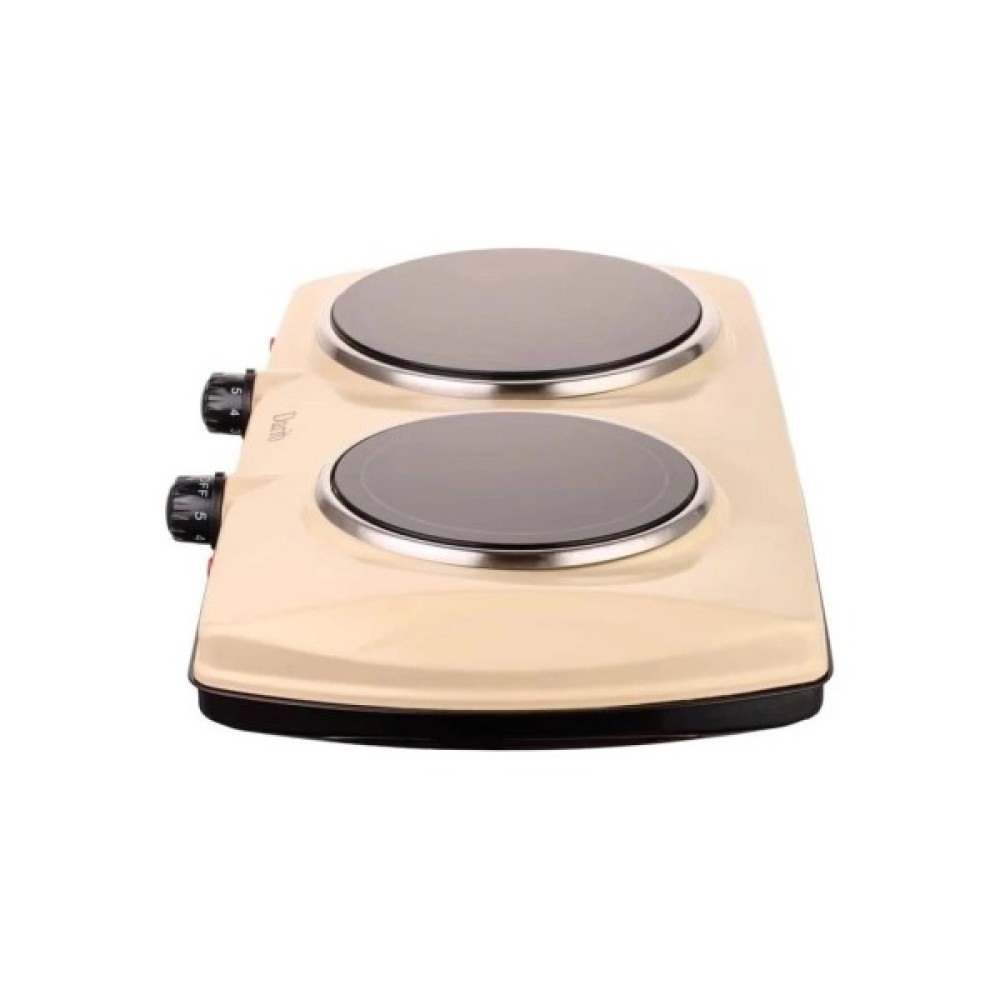Настільна електроплита Dario DHP 122 B - це компактна двоконфоркова плитка з потужністю 2100 Вт, оснащена дисковими (чавунними) нагрівальними елементами. Вона має механічне керування, плавне регулювання температури та світловий індикатор роботи, що робить її придатною для дачі або невеликих кухонь.