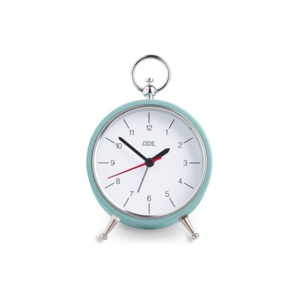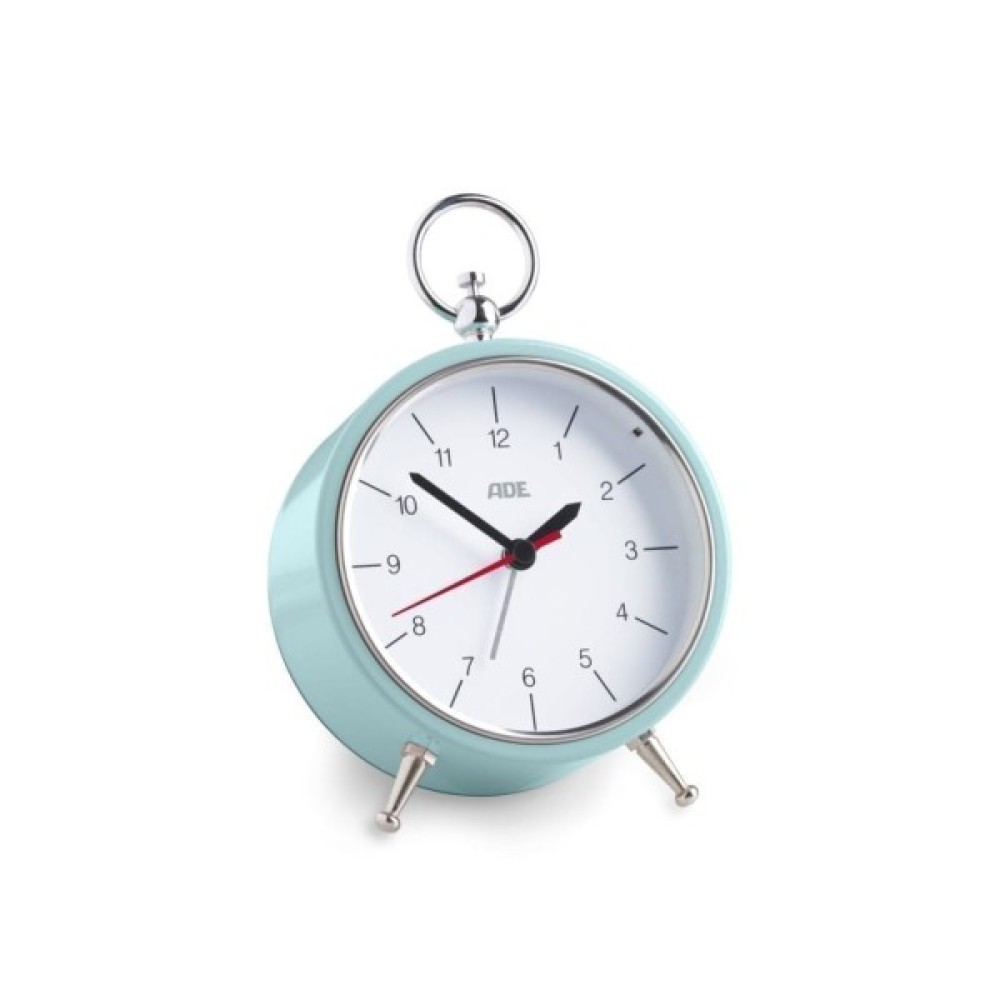 Ностальгія та сучасність: аналоговий будильник у стилі ретро із вбудованою функцією повтору вiд ADE – ідеально підходить для всіх, хто любить розслабитися вранці. Час можна встановити вручну класичним способом, а будильник можна легко увімкнути або вимкнути на задній панелі за допомогою перемикача. Завершений міцним металевим корпусом м'ятного кольору, він не бажає кращого серед ретро-будильників.