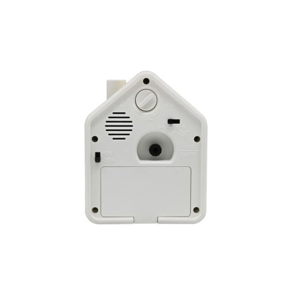 Функції: годинник, хвилини, секунди, будильник з регулюванням гучності та вибором мелодії (звичайний сигнал та 2 види щебетання птахів), підсвічування, безшумний хід стрілок