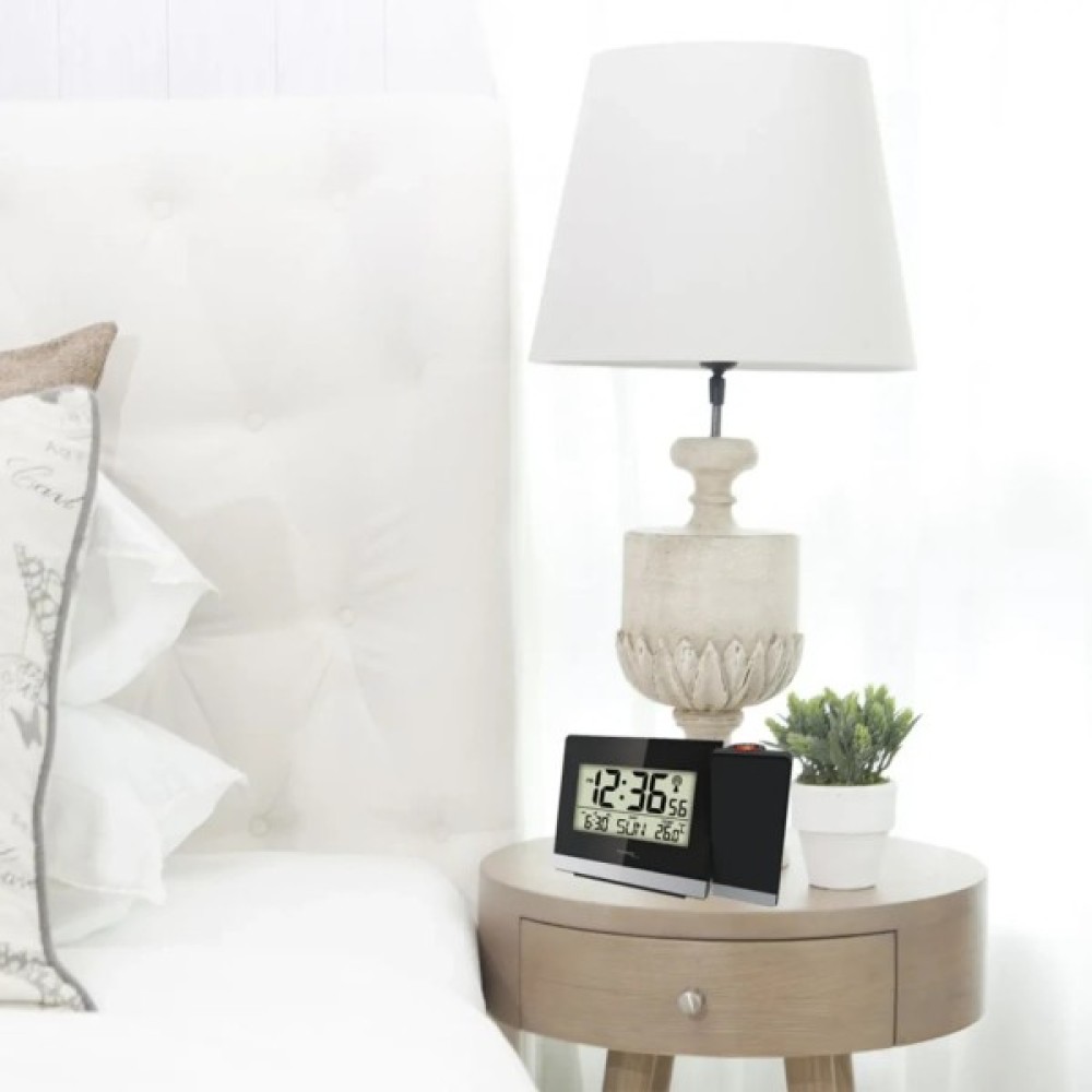 Проекційний годинник з будильником Technoline WT536 дозволяє не лише змінити кут нахилу проекції, переводячи проекцію зі стелі на стіну, але також змінити орієнтацію проекції в площині. Тепер немає необхідності крутити годинник на столі, щоб домогтися правильної орієнтації цифр. Досить просто натиснути кнопку, і проекція повернеться на 90 °, 180 ° або 270 ° в площині. Крім того, це одна з небагатьох моделей, де є можливість повного відключення проекції, якщо вона не потрібна, наприклад, в денний час доби. Разом з проекцією включається і приємне світло-блакитне підсвічування дисплея. Втім, в денний час індикацію добре видно і без підсвічування. На додаток годинник забезпечений термометром і будильником з функцією повтору сигналу Snooze.