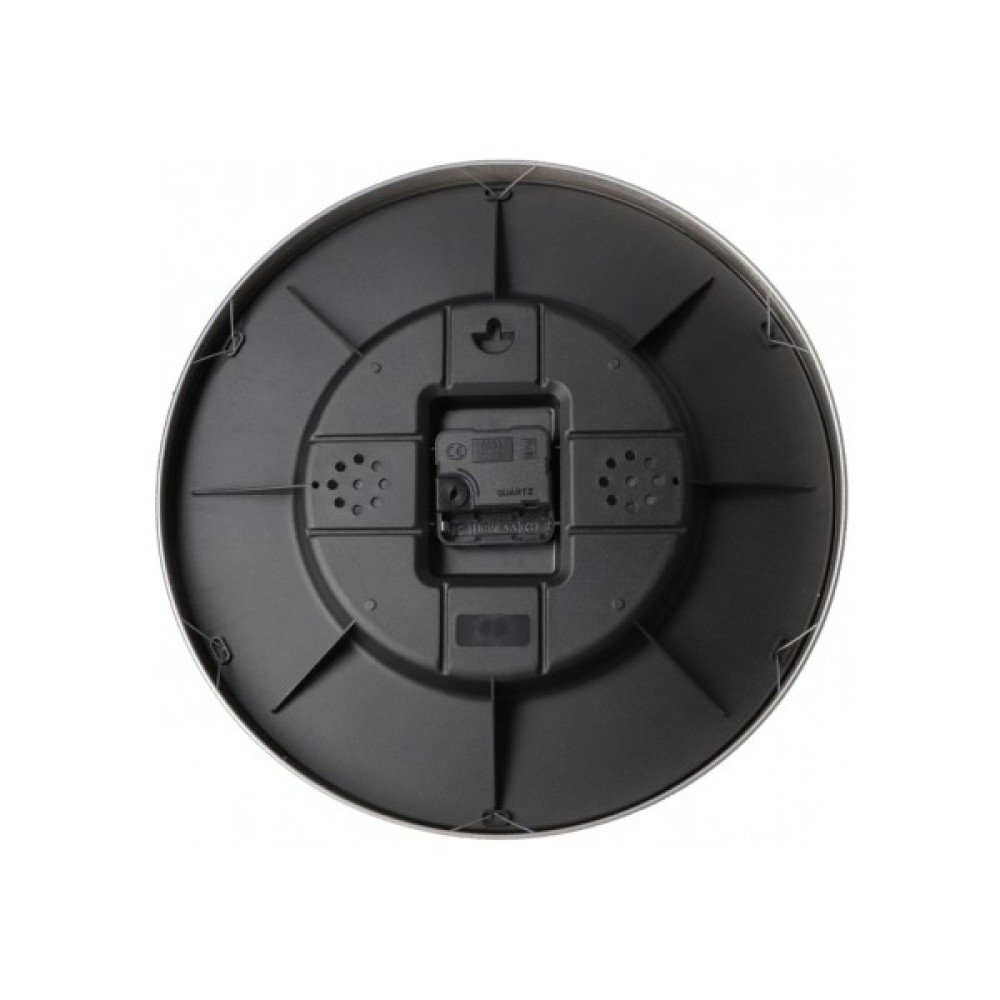 Годинник настінний; металеве обрамлення; хід стандартний; форма кругла; діаметр - 33 см; тип механізму: кварцовий; елемент живлення: батарея типу АА х 1 шт (батарейка до комплекту не включена); завдяки зручному механізму швидко розбираються/збираються.