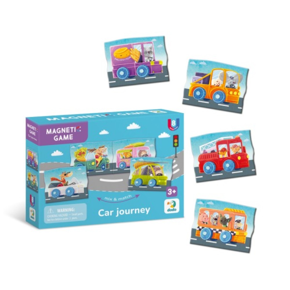 Знайомимо вас з новою магнітною грою Dodo «Автомобільна подорож». Набір складається з 8 магнітних елементів з різними автомобілями та тваринками, які їздять разом як водії та пасажири.