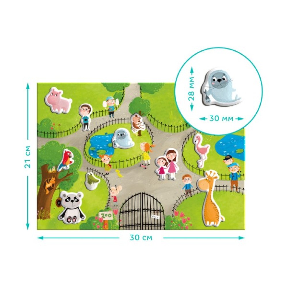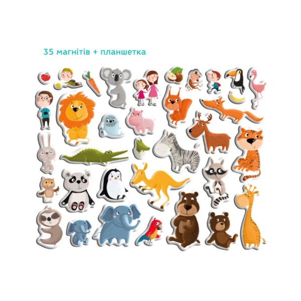 У наборі: 1 магнітна дошка 21 x 29.7 см та 35 елементів.