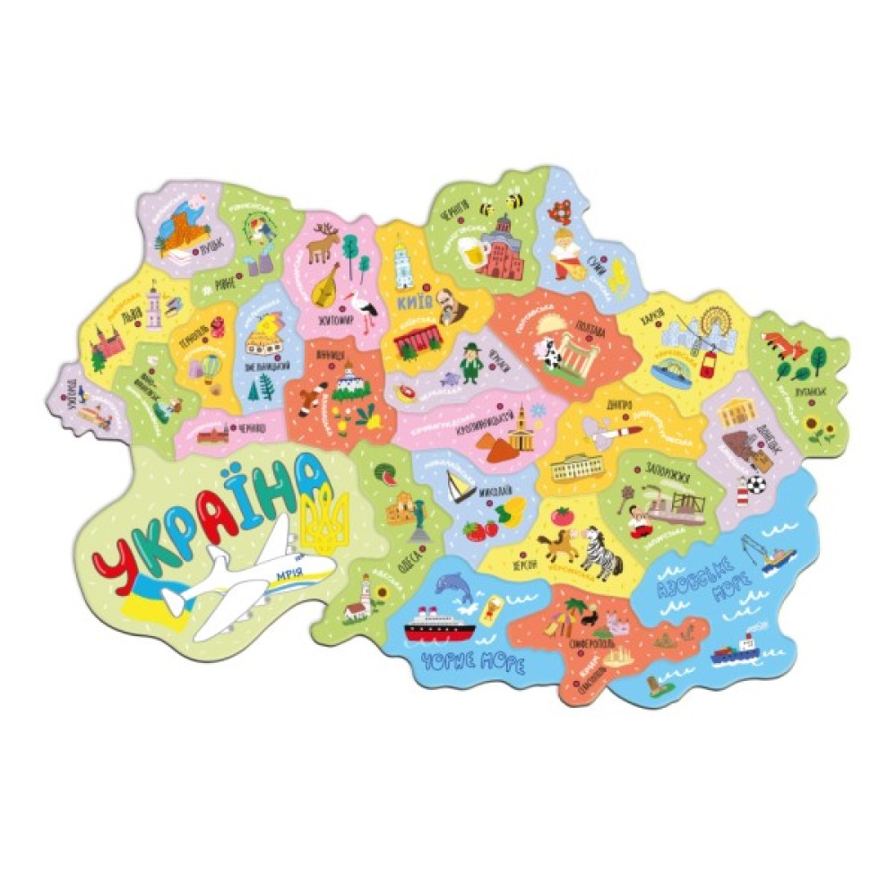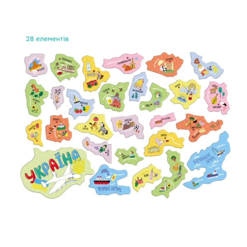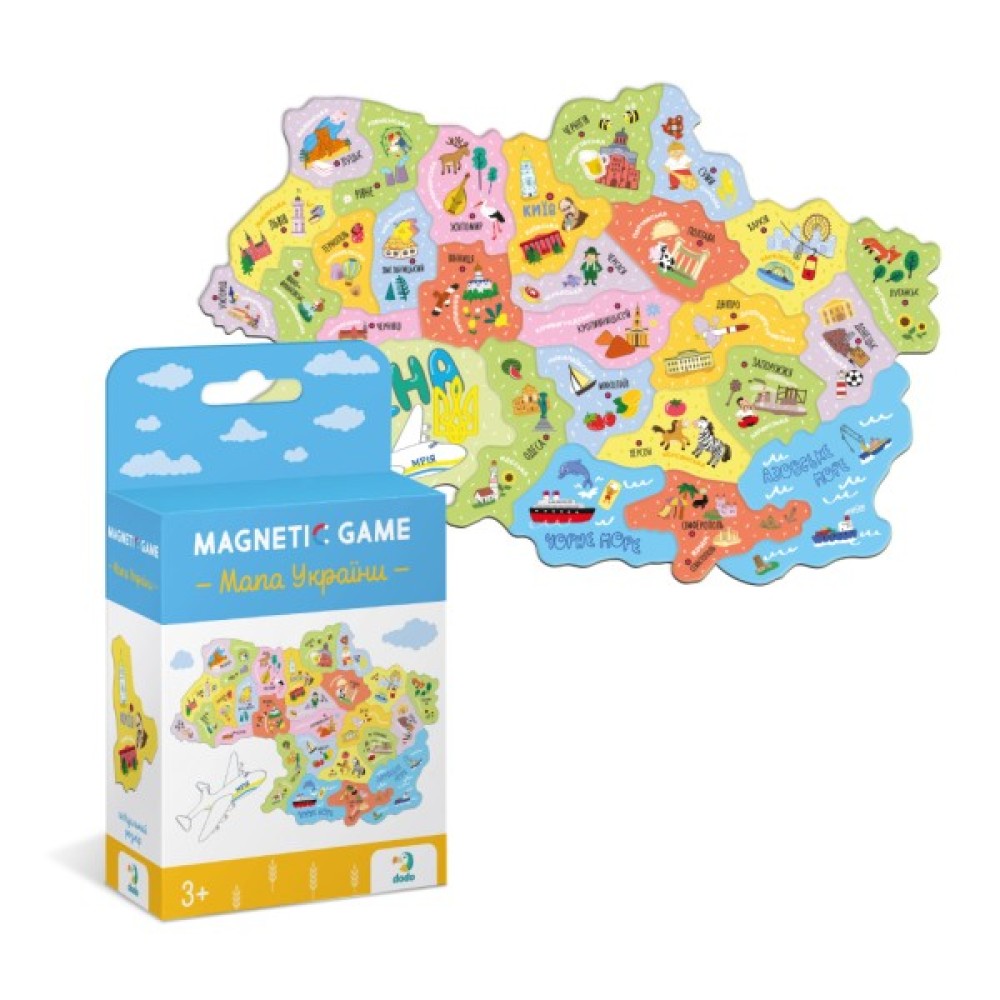Доброго вечора, ми з України! Зустрічайте новий пазл Dodo, натхненний нашою рідною країною. Кожен елемент цього пазлу - область України та зображені найбільш відомі місця та цікавинки нашої найкращої. Але це не просто пазл. Це магнітний пазл, тож малята можуть його збирати та просто так, і прикріпляти до металевих поверхонь, холодильнику, наприклад.