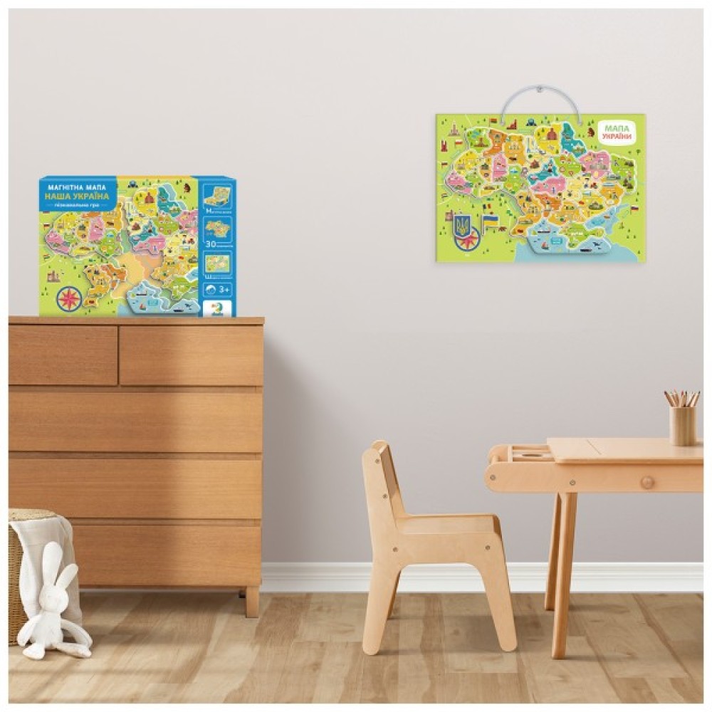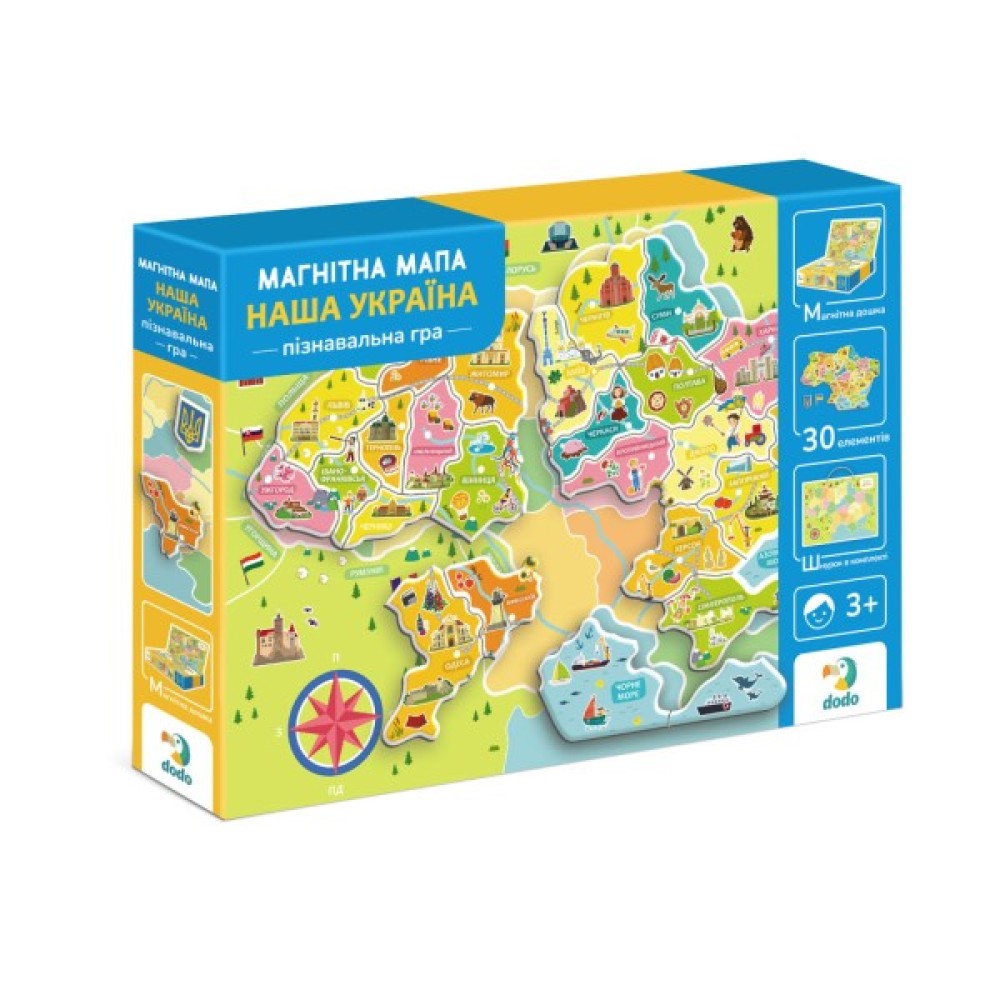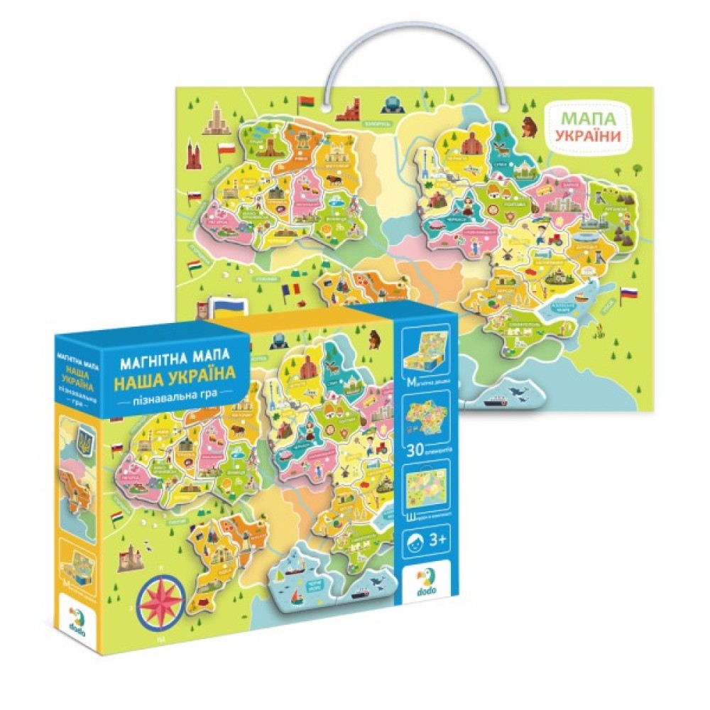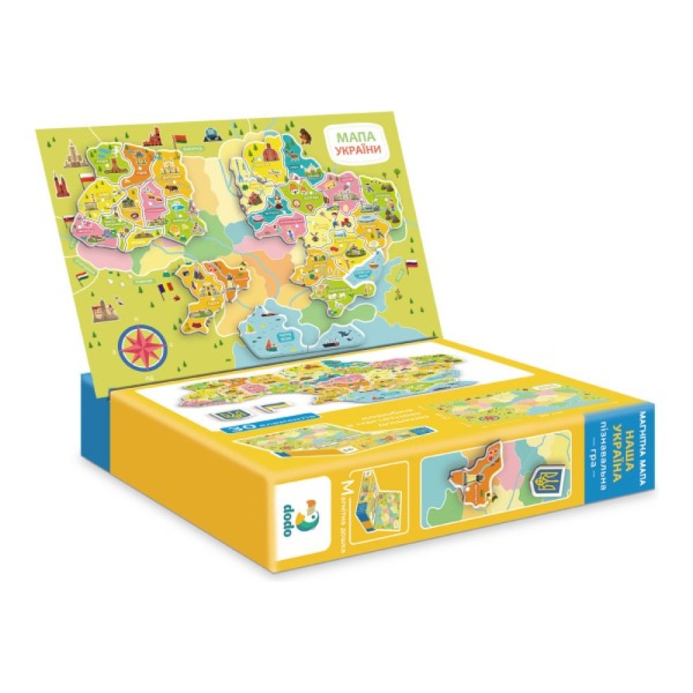 Розвиваюча гра Dodo "Магнітна мапа України" — це захоплюючий спосіб для дітей дізнатися більше про географію рідної країни! У наборі є магнітна дошка з картою України, 30 магнітних елементів із зображеннями визначних місць та символів кожної області, а також шнурок, який кріпиться до дошки і дозволяє повісити мапу на стіну в дитячій кімнаті.