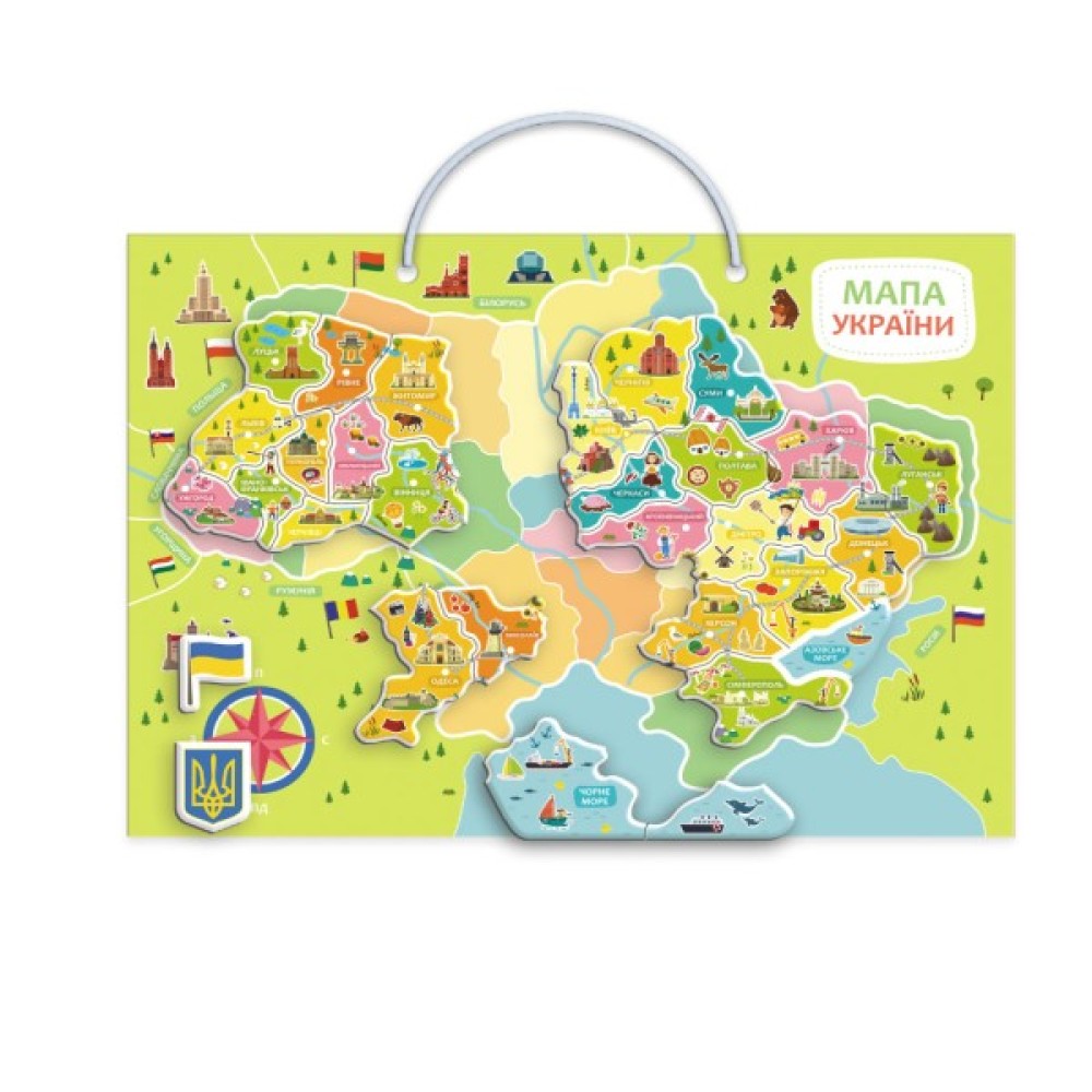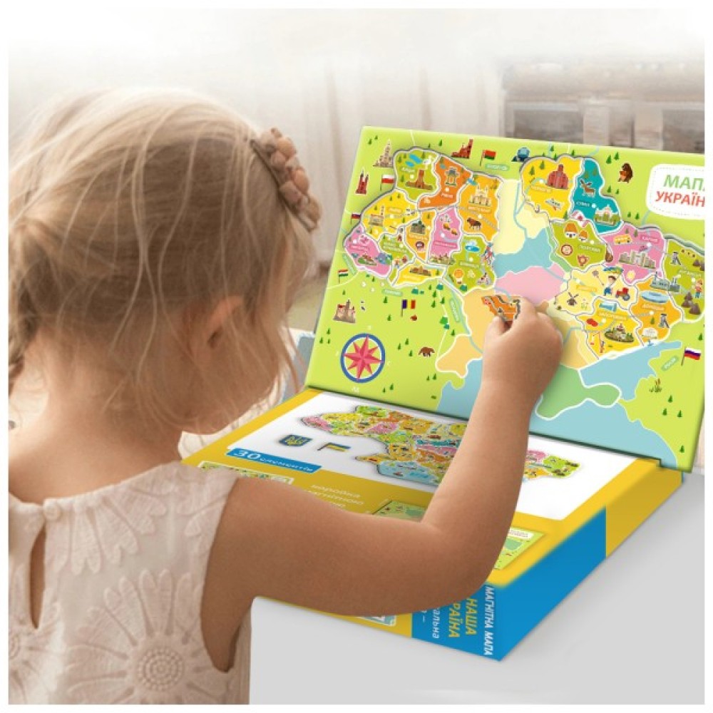 Ця гра допоможе малюку не лише познайомитися з географією України, але й розвинути просторове мислення, уважність та пам'ять. Вивчайте області, річки, моря та інші цікаві об'єкти країни у веселій формі!