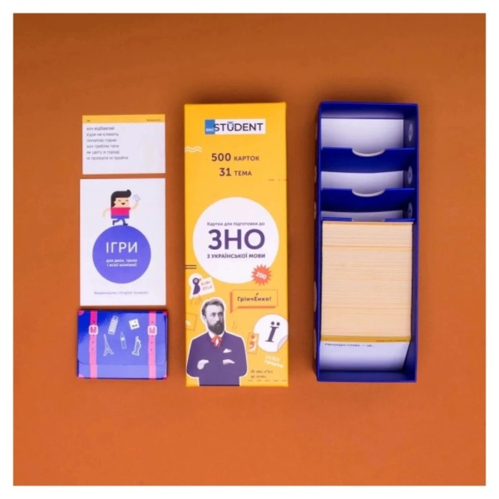 Готуєшся складати англійську в цьому році? Хочеш швидко збільшити словниковий запас? Тоді набір карток англійських слів для підготовки для ЗНО від видавництва English Student для тебе! Тут зібрані слова рівня В2-С1, які рекомендує Міністерство освіти, для школярів, абітурієнтів та викладачів для підготовки до зовнішнього незалежного оцінювання.